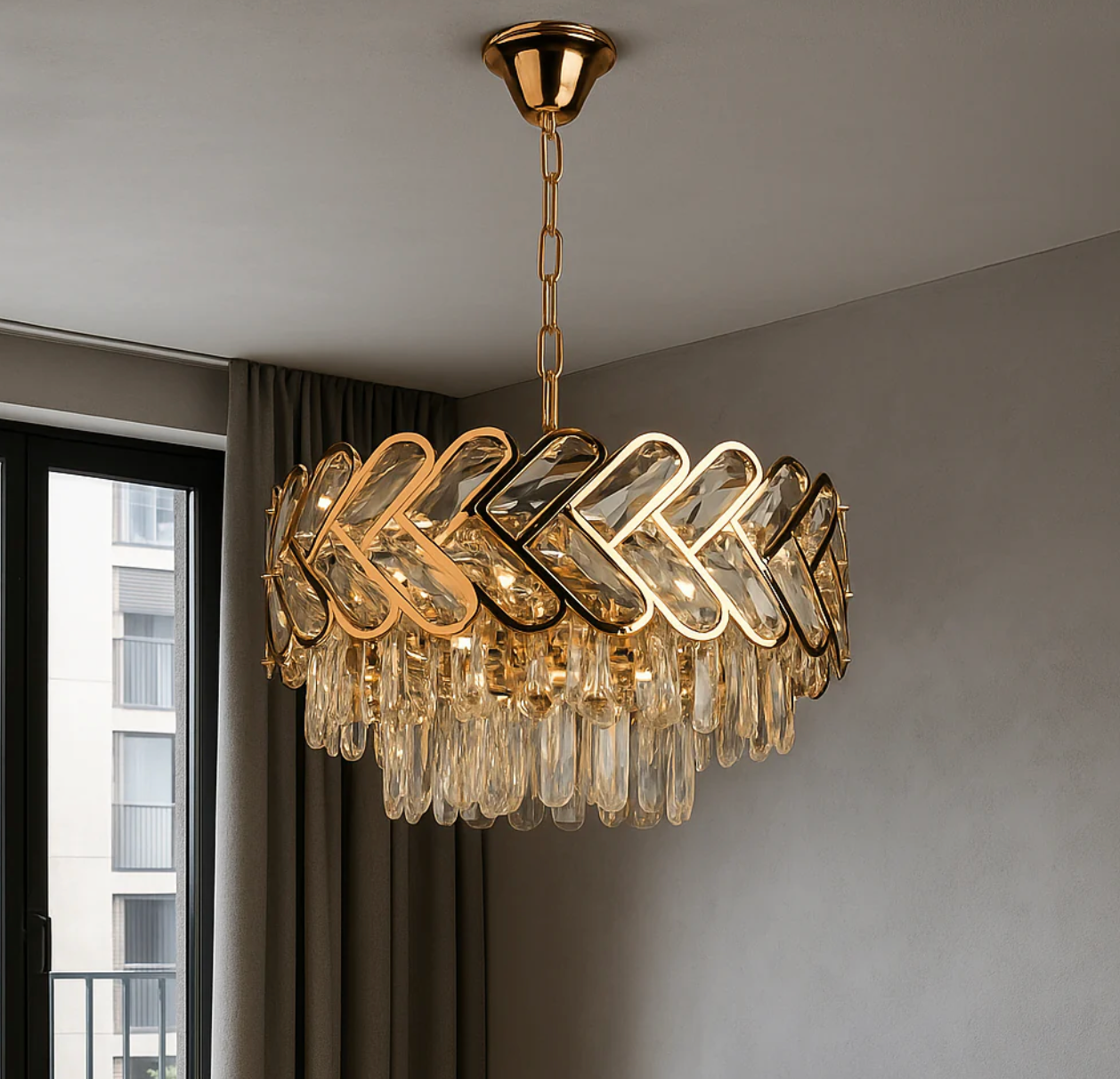 Candelabru Cristal Muke 5xE27, Diametru 40cm, Auriu, Inaltime Reglabila