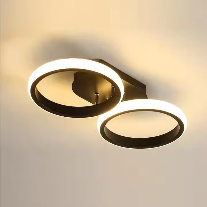 Design s propojenými kruhy působí nejen moderně, ale také zajišťuje vyvážené rozložení světla a vytváří příjemnou a pohodlnou atmosféru.