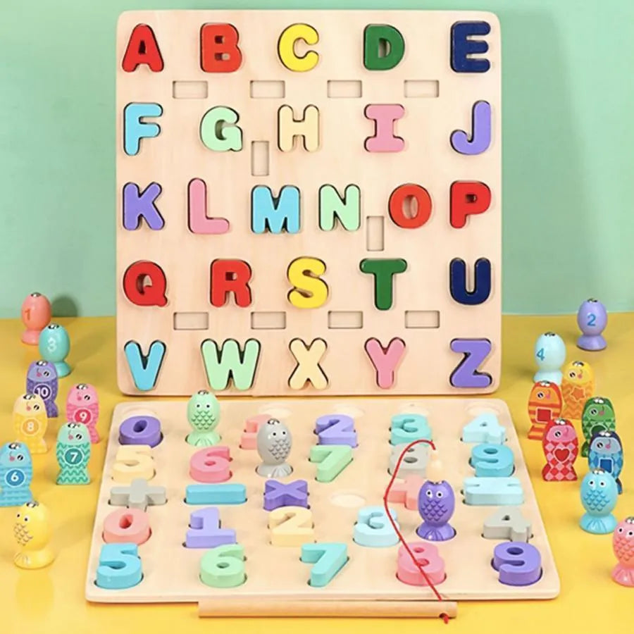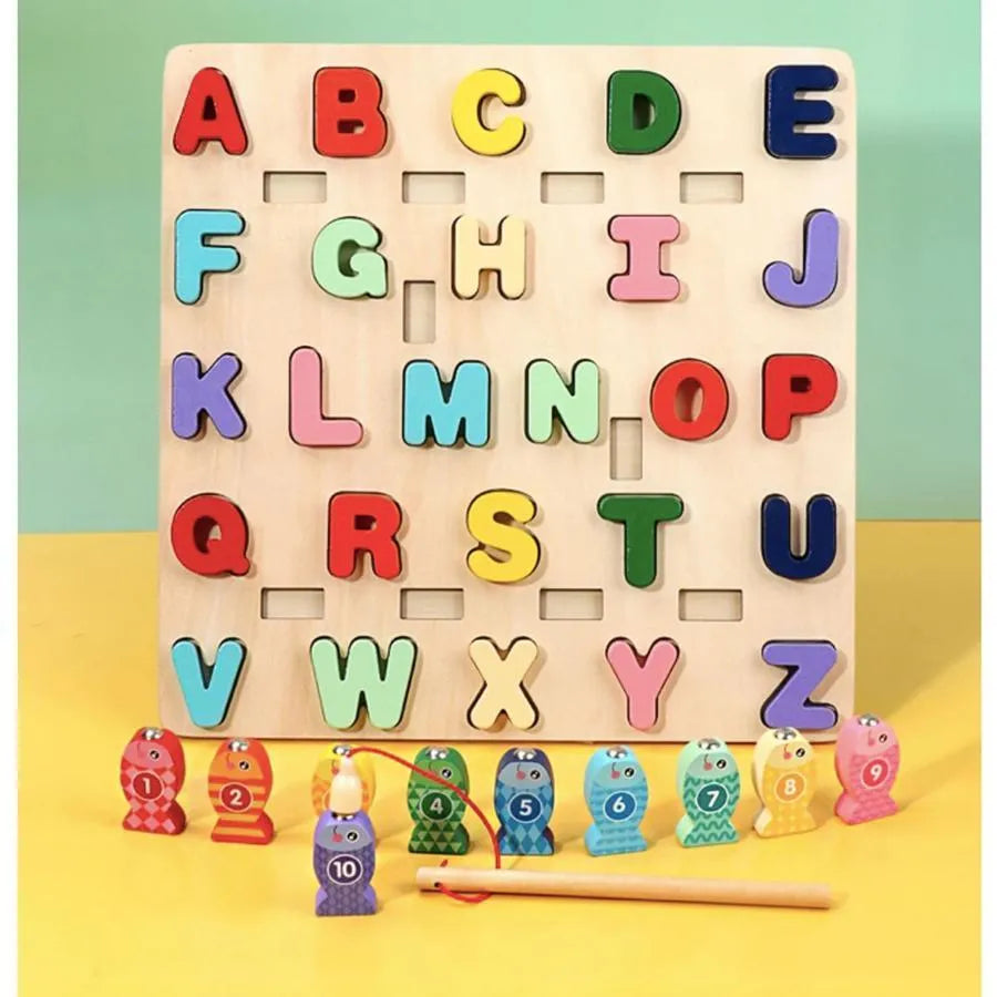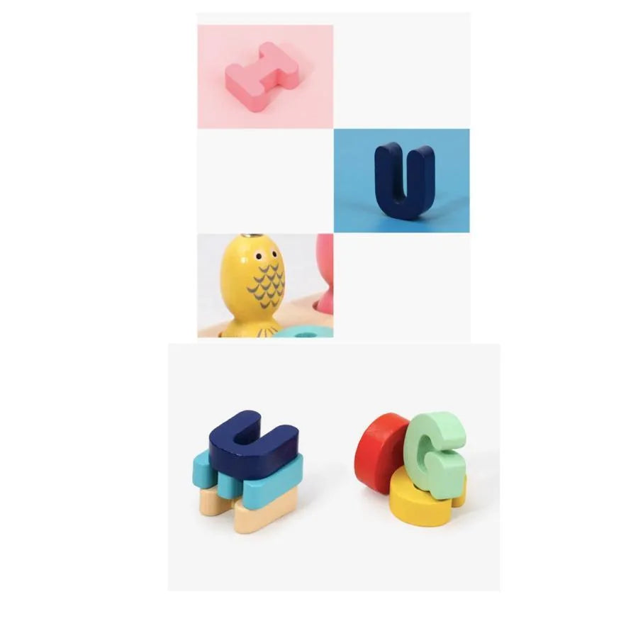 Hračka pro vzdělávací radu s vícebarevnými písmeny a rybami, 36 kusů, dřevo