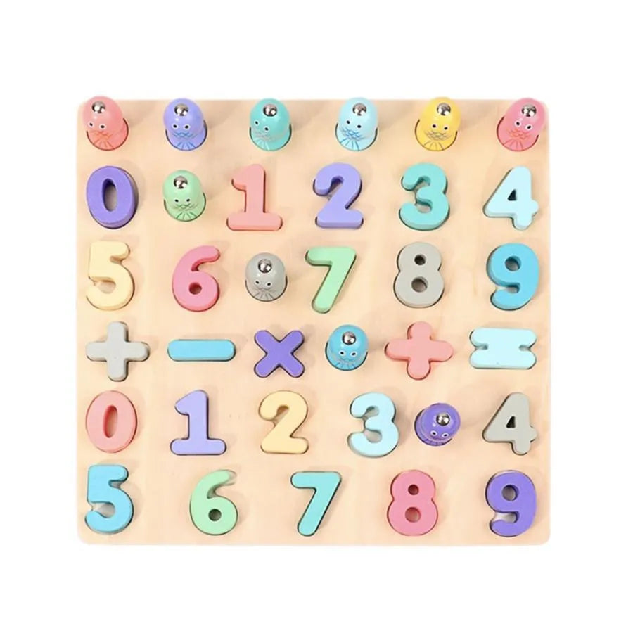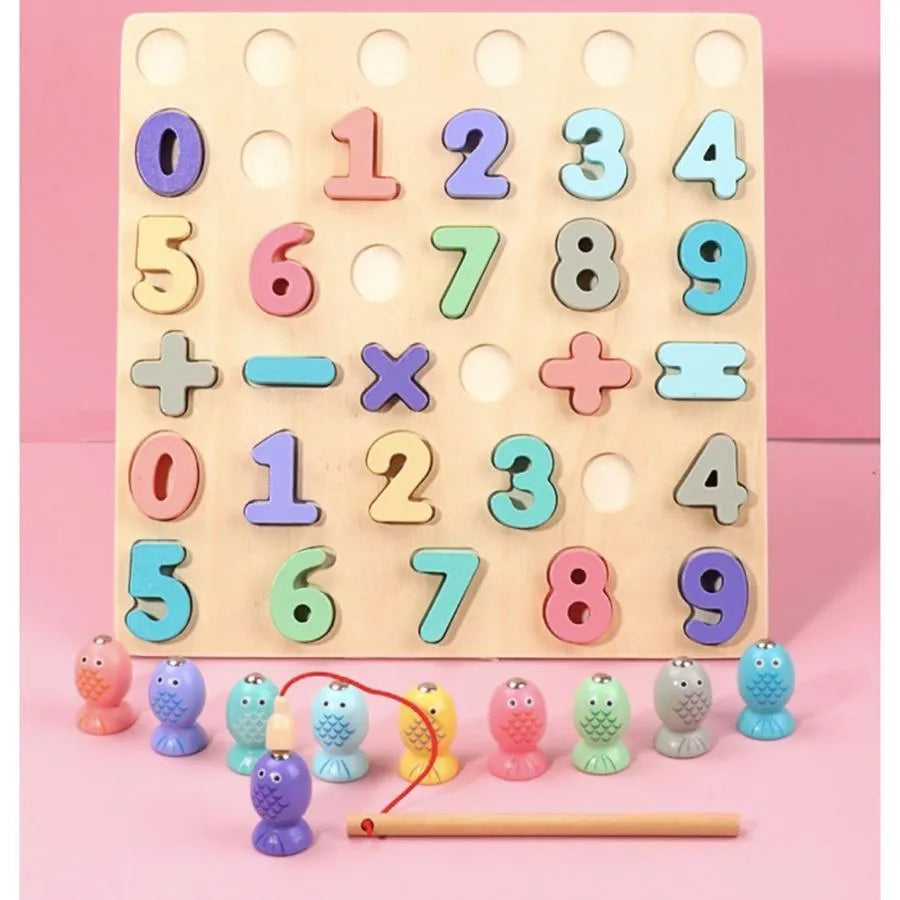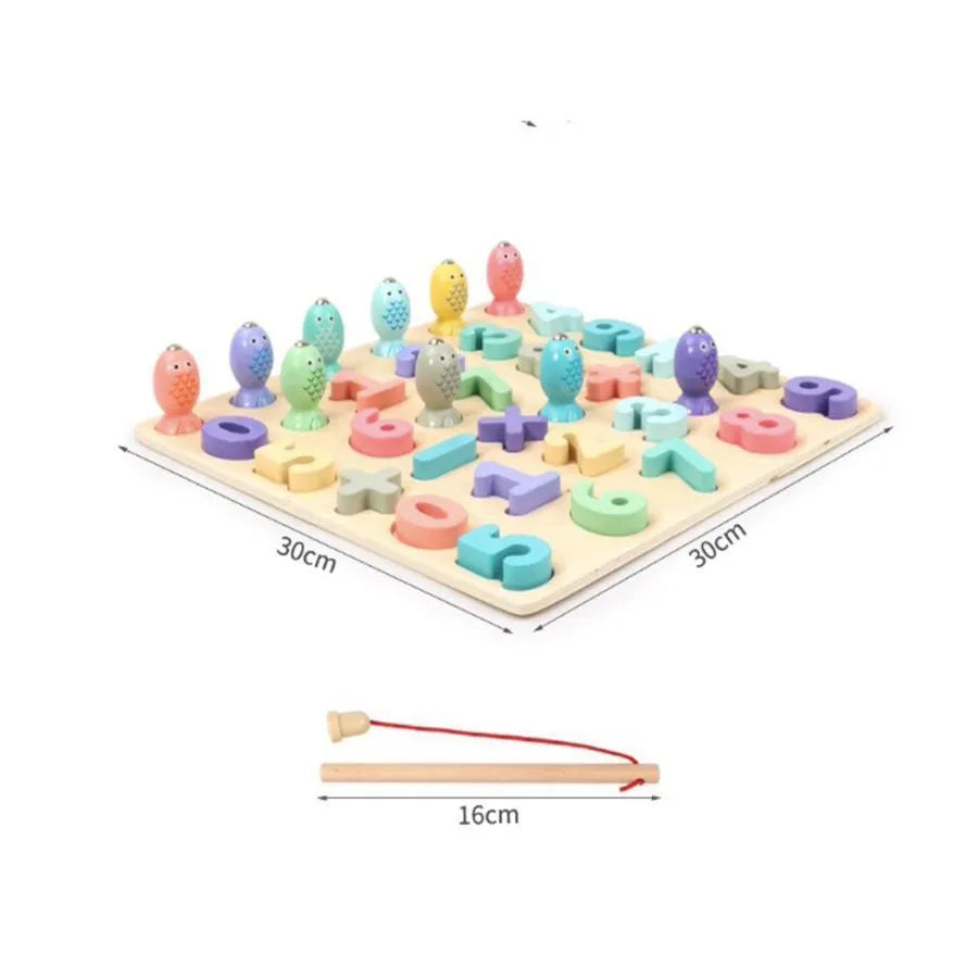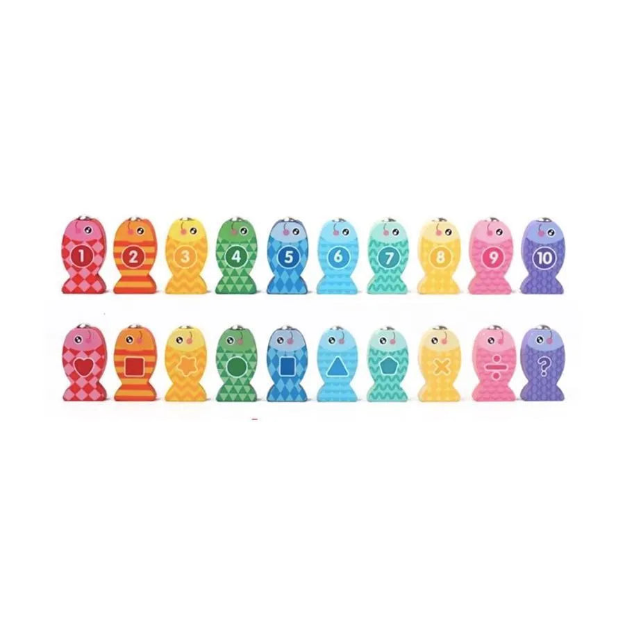 Hračka typu vzdělávací rady s vícebarevnými postavami a rybami, 36 kusů, dřevo