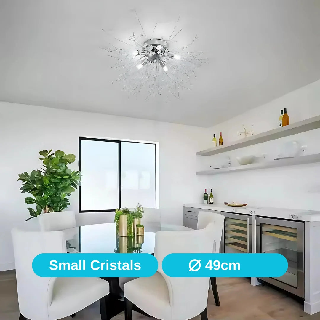 - Lesklý stříbrný povrch: Lesklá stříbrná barva kovové konstrukce dodává nádech modernosti a elegance, odráží světlo a umocňuje jiskru krystalů.