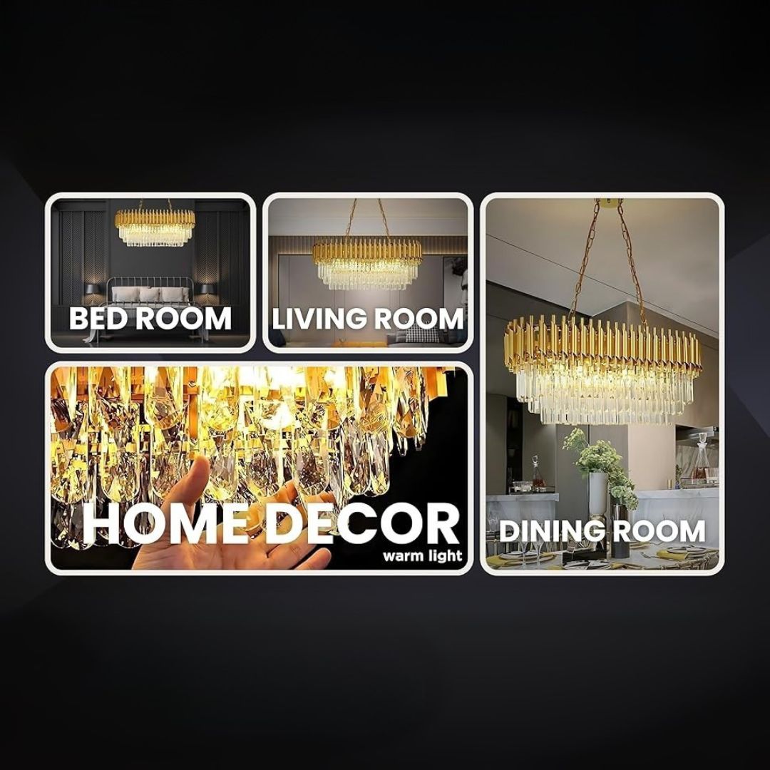 - Elegantní design a drahé materiály: S finišem zlatý lesklá a robustní struktura z kov a krystal, tento lustr pozastavit je vnucena svou sofistikovanou přítomností. Nastavitelná výška umožňuje dokonalé přizpůsobení v závislosti na prostoru.