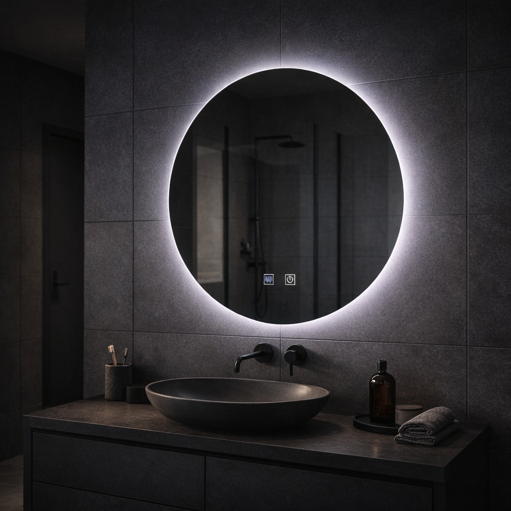 Super cena Primavara in Casa TaLED kulaté zrcadlo, 60 cm, Celeste Majesté Noir MotionGlow Marcello, Demister System, Hodiny & Teploměr, Stmívatelné