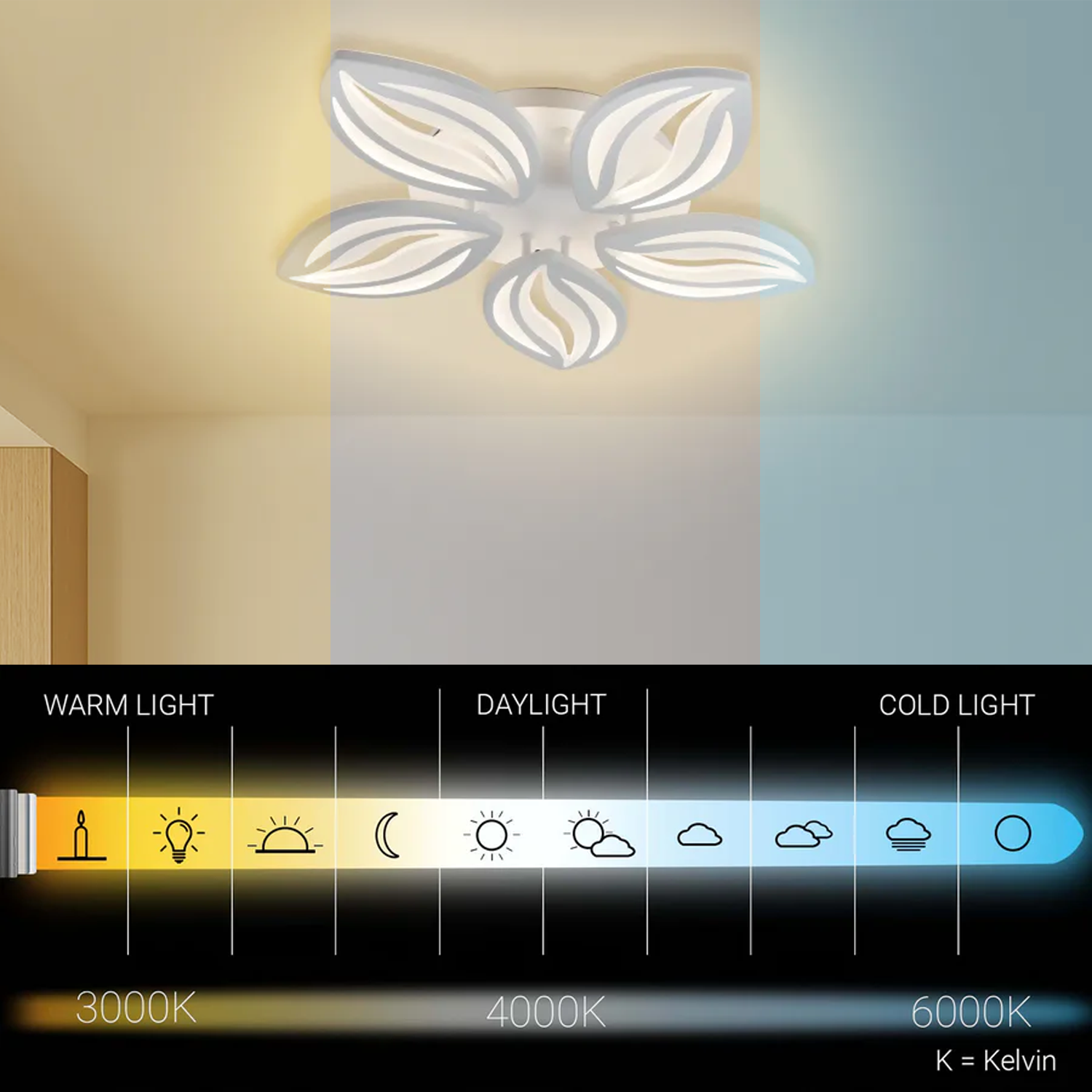 LED lustr s dálkovým ovládáním ORCHID 65W, 5 okvětních lístků, Studené/Teplé/Neutrální světlo, Stmívatelné, Bílá
