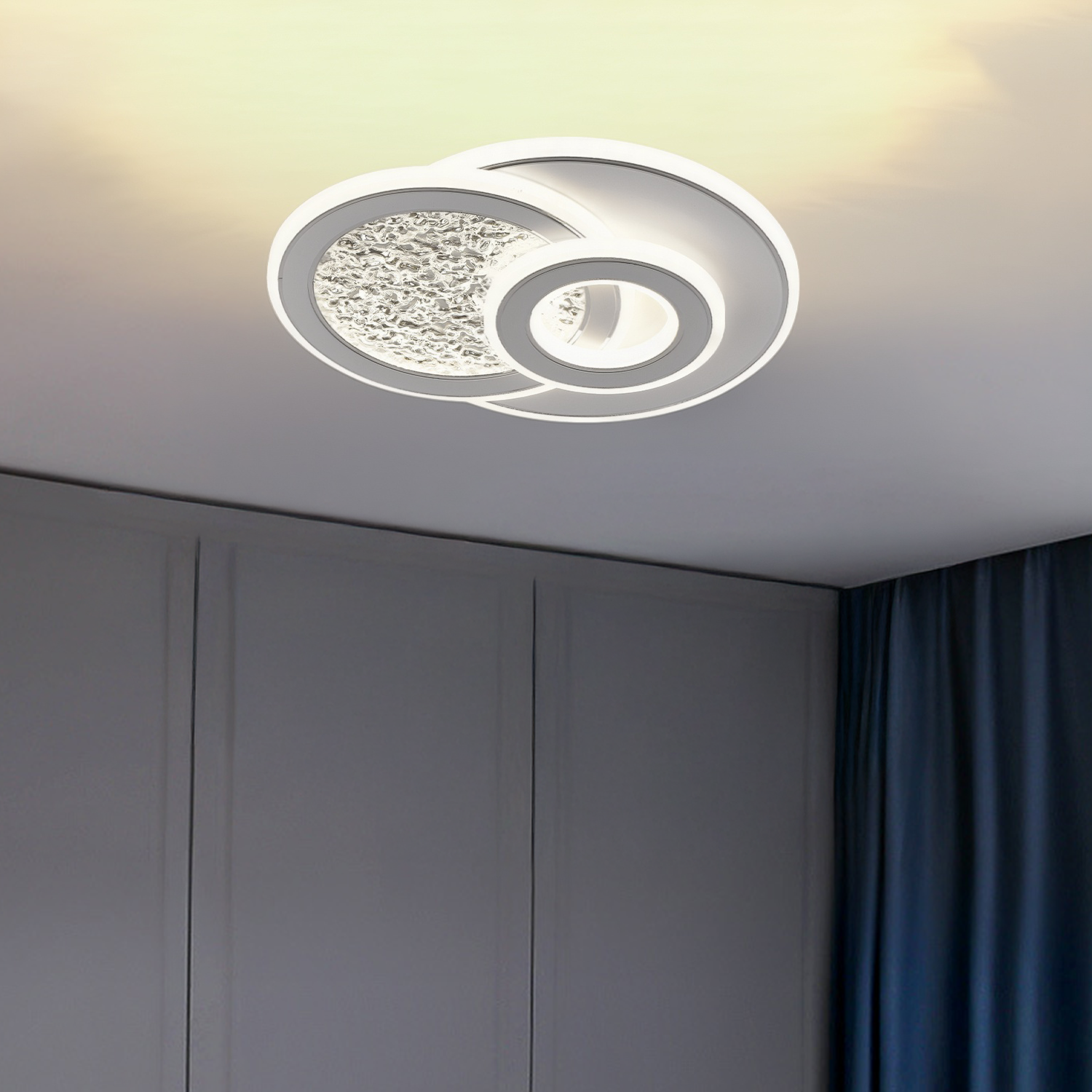 Kompacto Rondos Chanderier, ideální pro menší prostory nebo sekundární oblasti, přináší rovnováhu mezi malými rozměry a designem naplněným osobností. Tři světelné kruhy vytvářejí harmonický vizuální efekt a nastavitelná barevná teplota (studená, horká, neutrální) umožňuje přizpůsobit se atmosféře podle okamžiku.