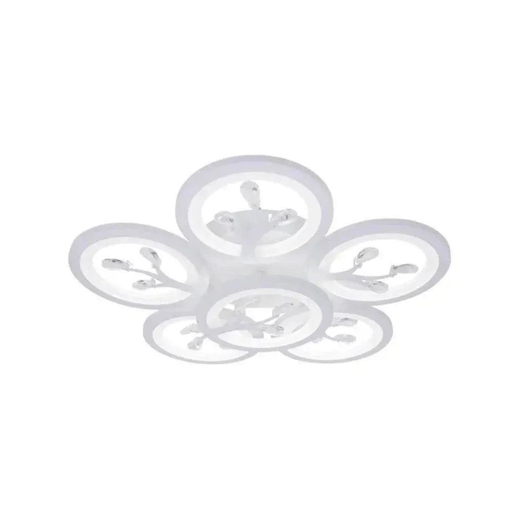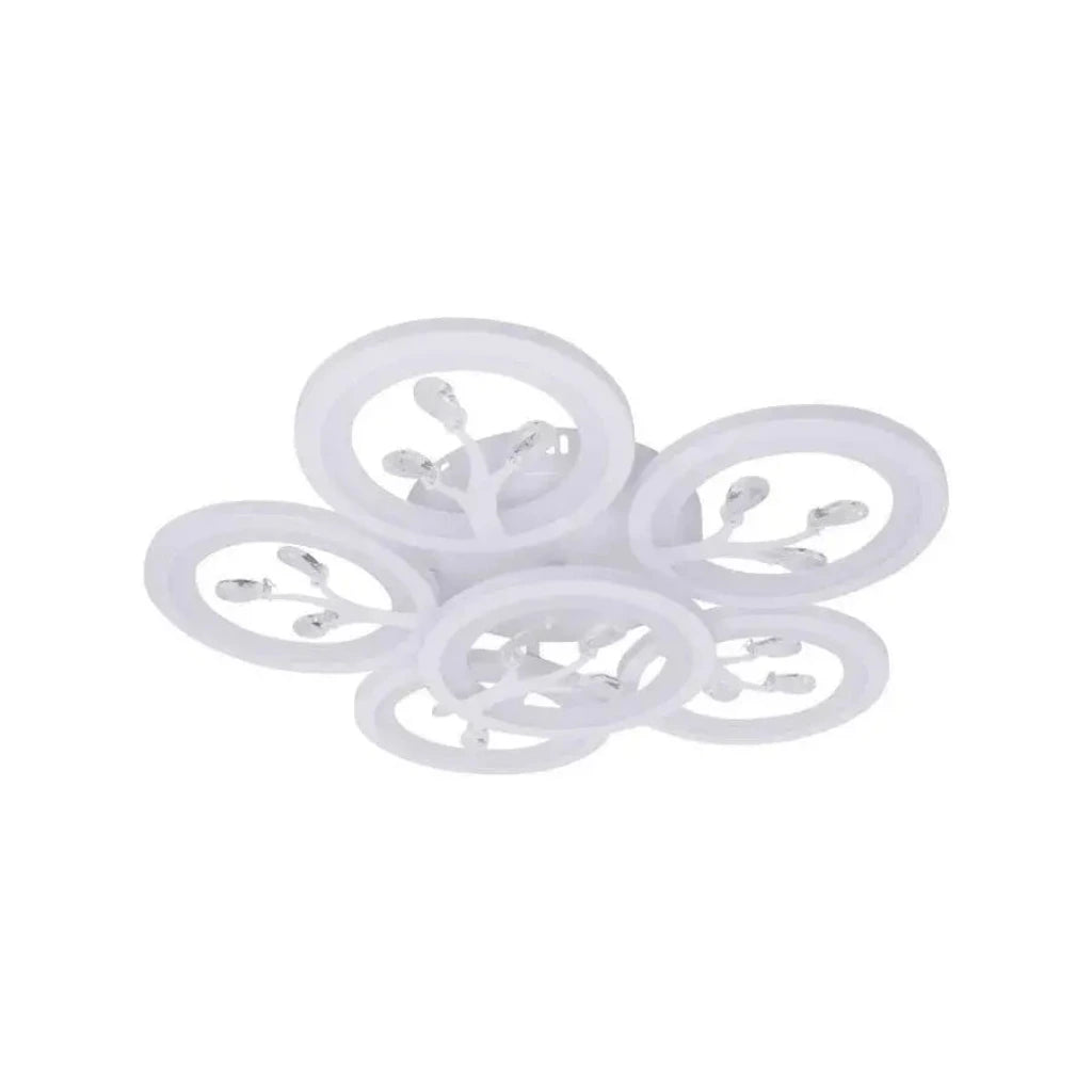 LED lustr s dálkovým ovládáním a krystaly DAISY je elegantní a moderní kus osvětlení s designem, který obsahuje 6 bílých prvků zdobených třpytivými krystaly. S výkonem 72 W nabízí všestranné osvětlení a přidává do vašeho prostoru sofistikovanost.
