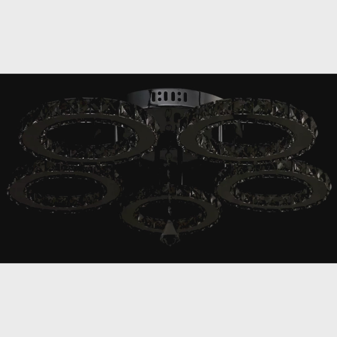 LED lustr s dálkovým ovládáním a krystalem ALANUBIS 61W, 5 kruhů, Studené/Teplé/Neutrální světlo, Stmívatelné, Lesklý chrom