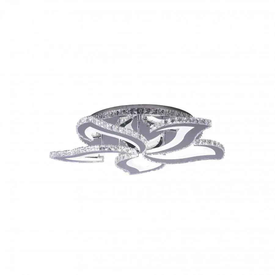 LED lustr s dálkovým ovládáním a krystalem Alejandro RGB 89W, 5 květů, studené/teplé/neutrální světlo, stmívatelný, lesklý chrom