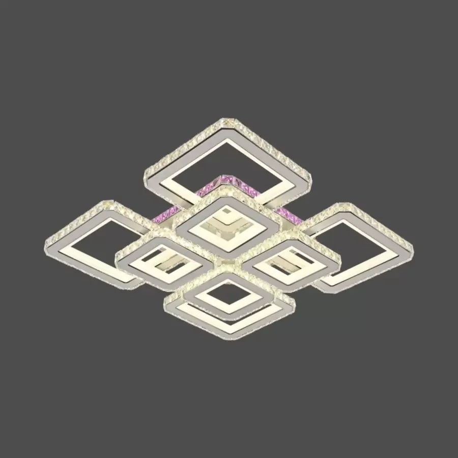 LED lustr s dálkovým ovládáním a krystalem BLAKELY RGB 163W, 8 čtverců, studené/teplé/neutrální světlo, stmívatelné, bílá