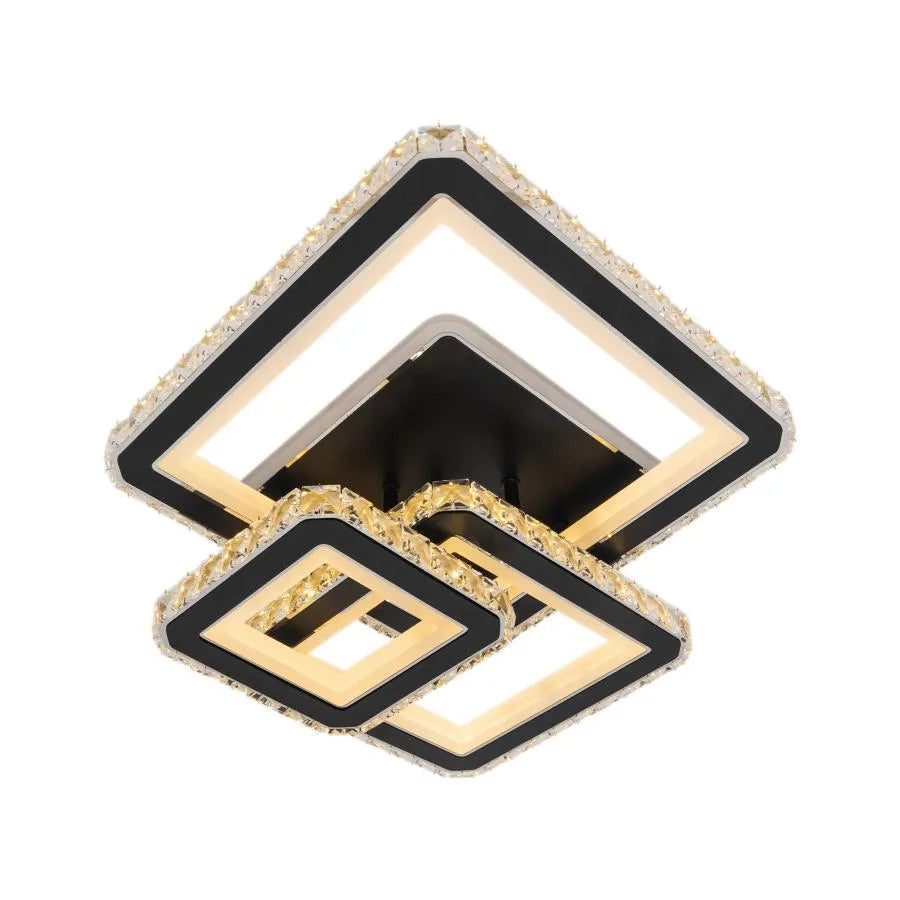 LED lustr s dálkovým ovládáním a krystalem LEILA 154W, 3 čtverce, studené/teplé/neutrální světlo, stmívatelný, lesklý černý chrom