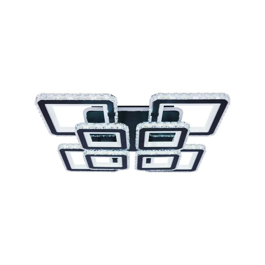 LED lustr s dálkovým ovládáním a krystalem LEILA RGB 237W, 8 čtverců, studené/teplé/neutrální světlo, stmívatelný, lesklý černý chrom