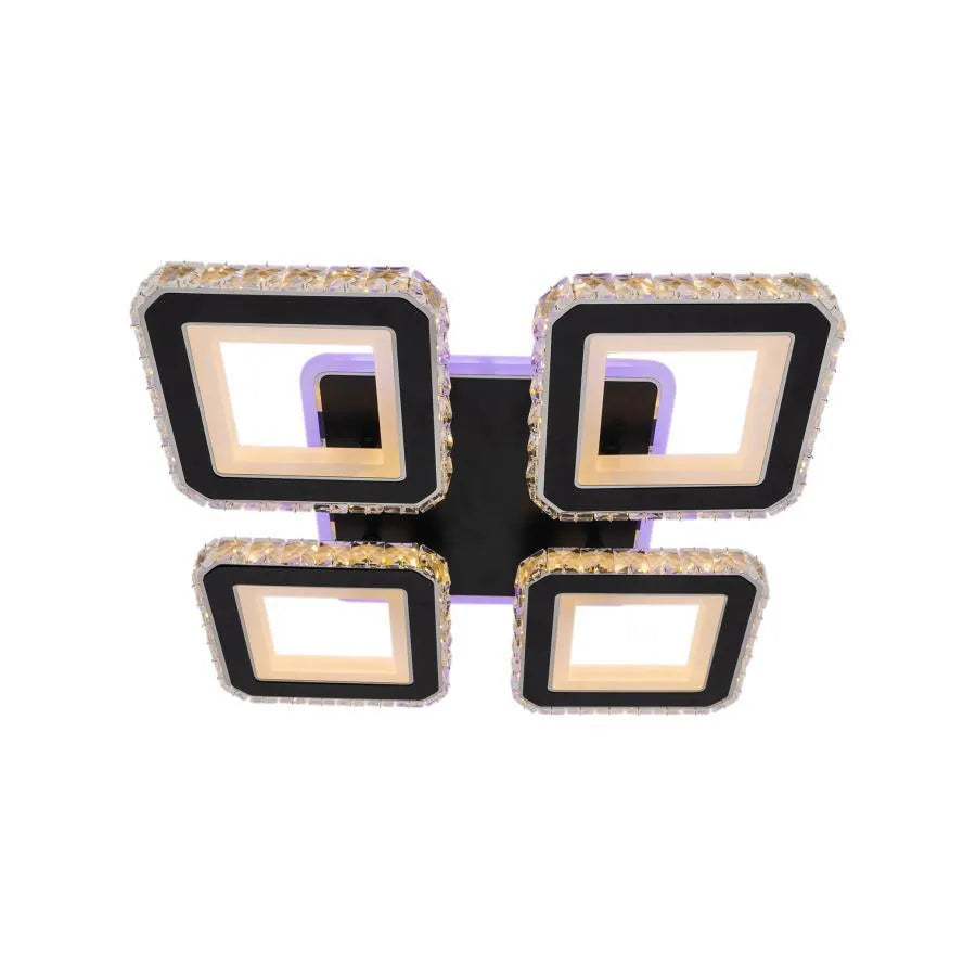 LED lustr s dálkovým ovládáním a krystalem LEILA RGB 79W, 4 čtverce, studené/teplé/neutrální světlo, stmívatelný, lesklý černý chrom