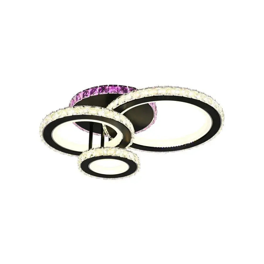 LED lustr s dálkovým ovládáním a krystalem LEOCADIA RGB 134W, 3 kruhy, Studené/Teplé/Neutrální světlo, Stmívatelné, Černá