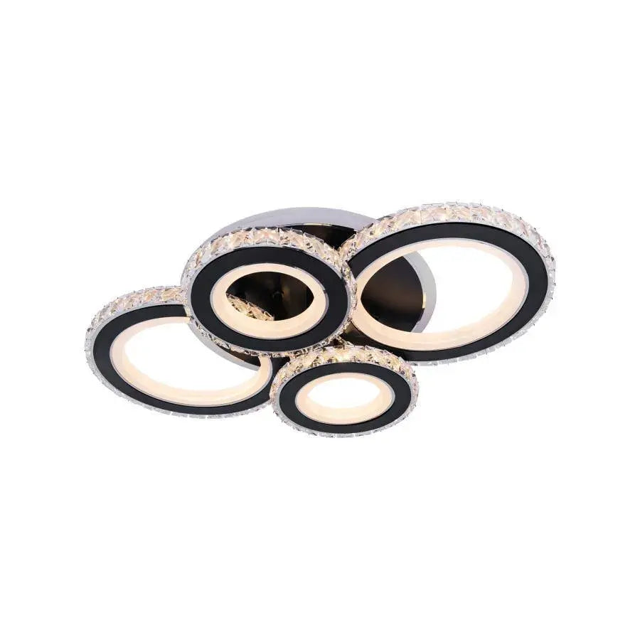LED lustr s dálkovým ovládáním a krystalem NOVA ROTONDA RGB 68W, 4 kruhy, Studené/Teplé/Neutrální světlo, Stmívatelné, Černá