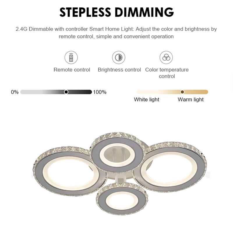V neposlední řadě jsou lustry této řady základem vašeho pohodlí, jak na to mají ovládaný dálkovým ovladačem. Máte tak možnost ovládat intenzitu i typ rozptýleného světla (teplé-3000k, neutrální-4000k a studené-6000k) jednoduchým stisknutím tlačítka.