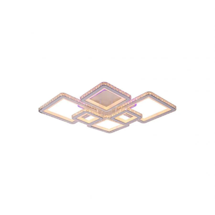 LED lustr s dálkovým ovládáním a krystalem QUADRIS RGB 170W, 6 čtverců, studené/teplé/neutrální světlo, stmívatelný, bílý