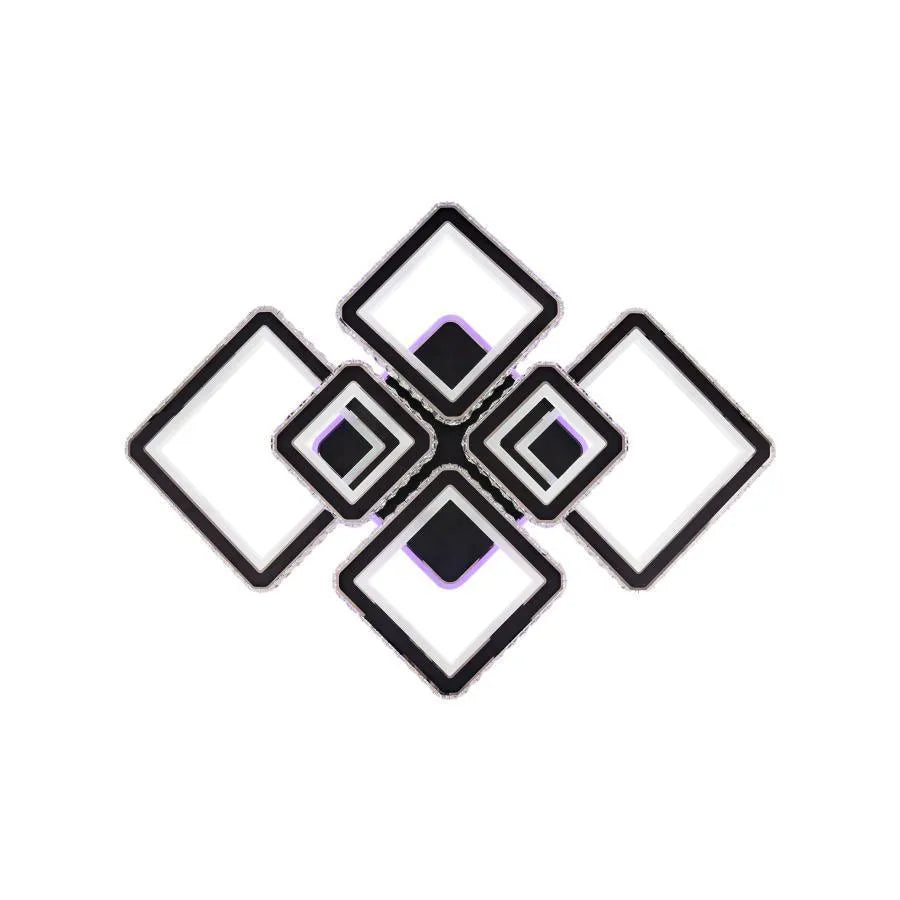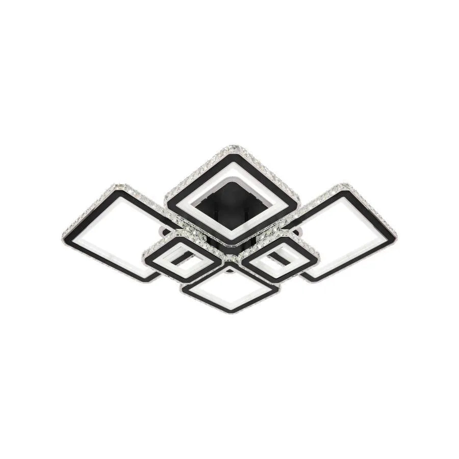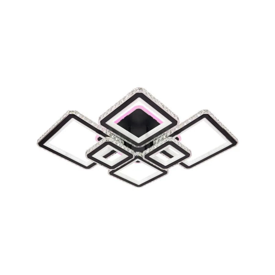 LED lustr s dálkovým ovládáním a krystalem QUADRIS RGB 330W, 6 čtverců, studené/teplé/neutrální světlo, stmívatelný, černý