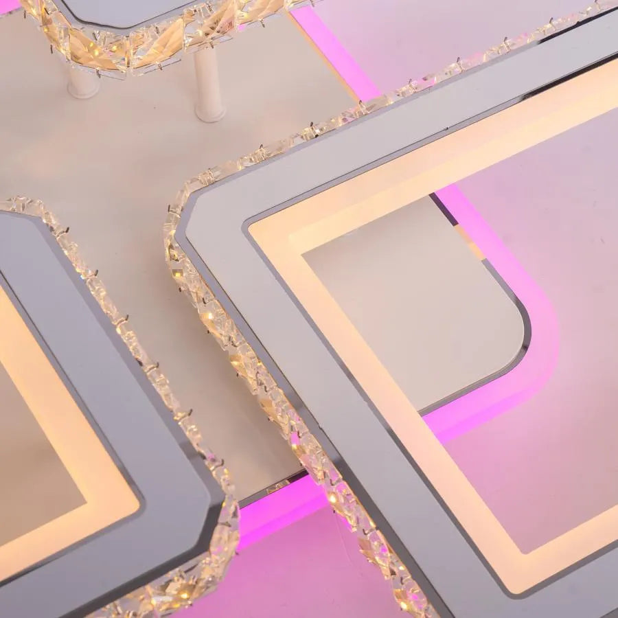 LED lustr s dálkovým ovládáním a krystalem QUADRIS RGB, 78W, 4 čtverce, studené/teplé/neutrální světlo, stmívatelné, bílá