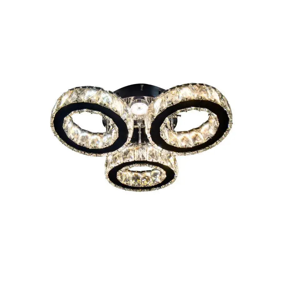 Dálkově ovládaný LED křišťálový lustr TIMOTEI je moderní a elegantní svítidlo s designem sestávajícím ze 3 soustředných kruhů, v černé barvě a zdobené třpytivými krystaly. S výkonem 30 W nabízí všestranné osvětlení a přidává do vašeho prostoru sofistikovanost.