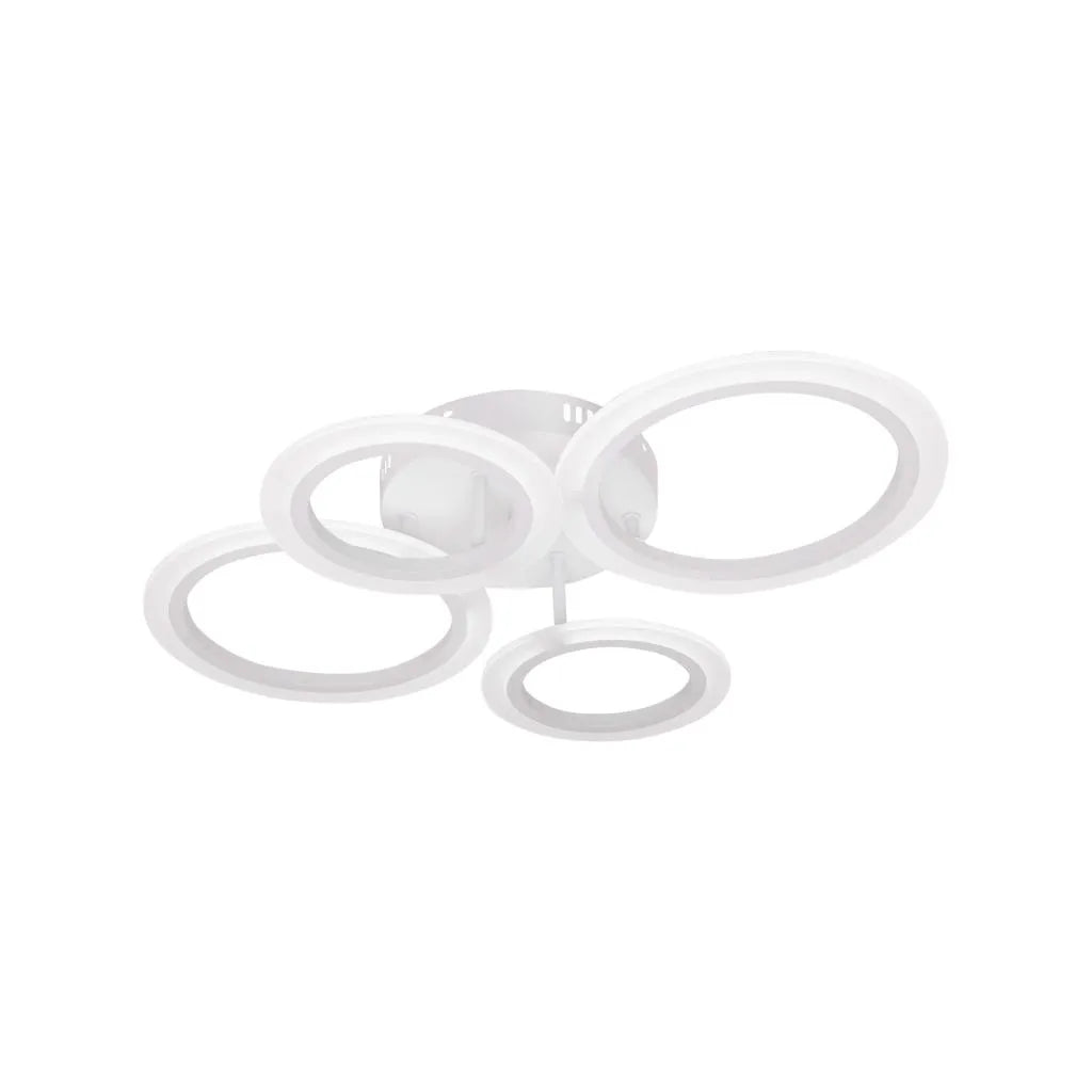 Tento moderní LED lustr Betty, 44W, bílý, má 4 světelné kruhy a nabízí všestranné osvětlení, vhodné do obývacího pokoje, ložnice nebo kuchyně.
