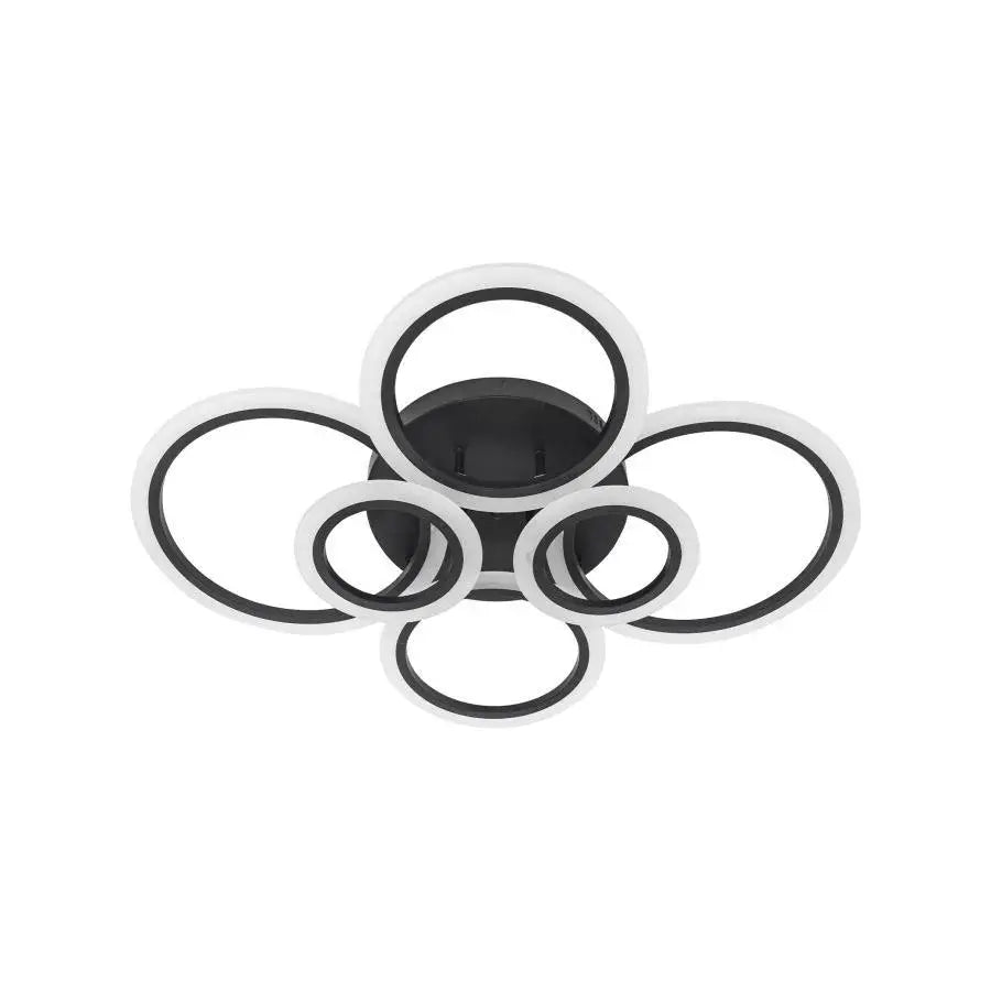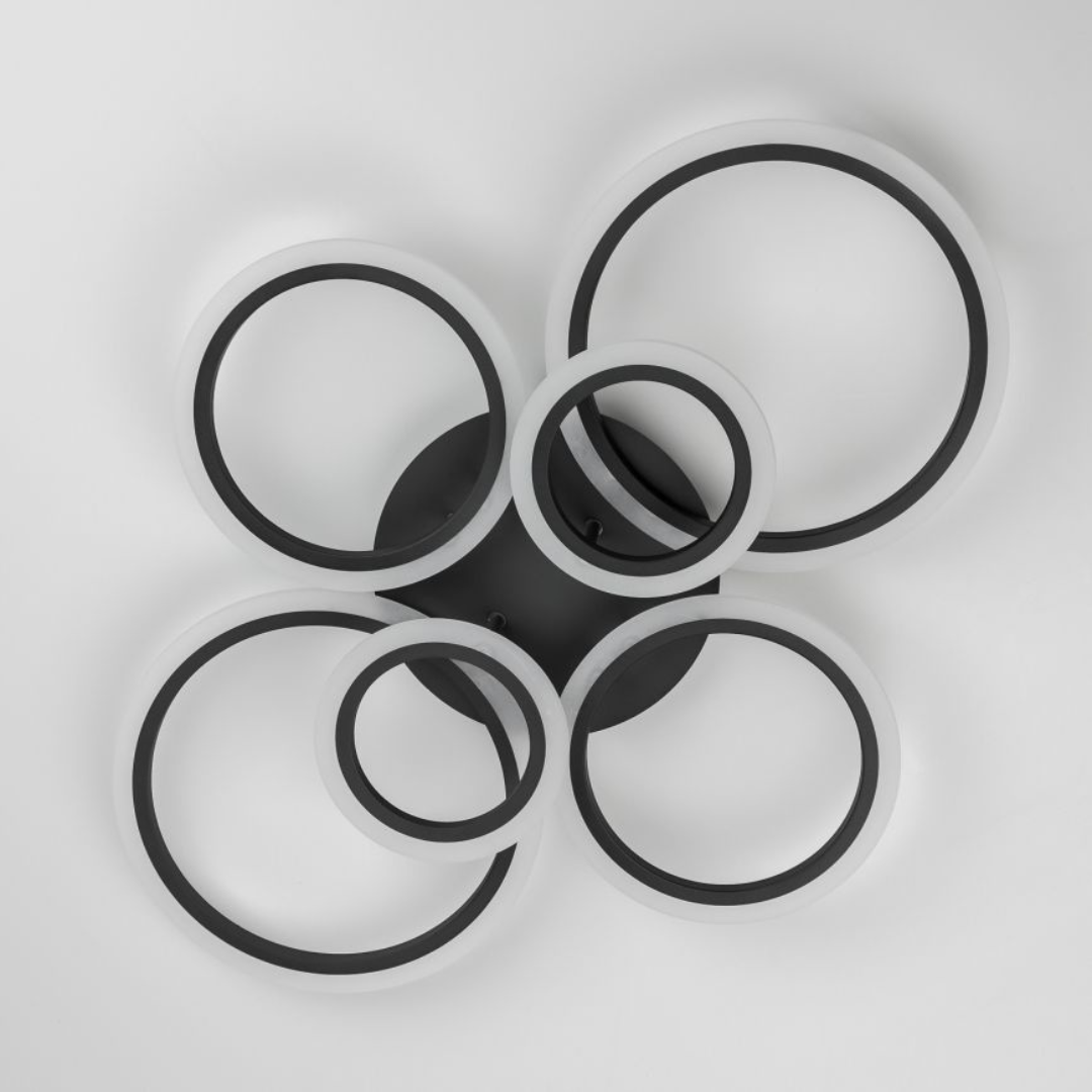 LED lustr s dálkovým ovládáním BETTY 82W, 6 kruhů, Studené/Teplé/Neutrální světlo, Stmívatelné, Černá