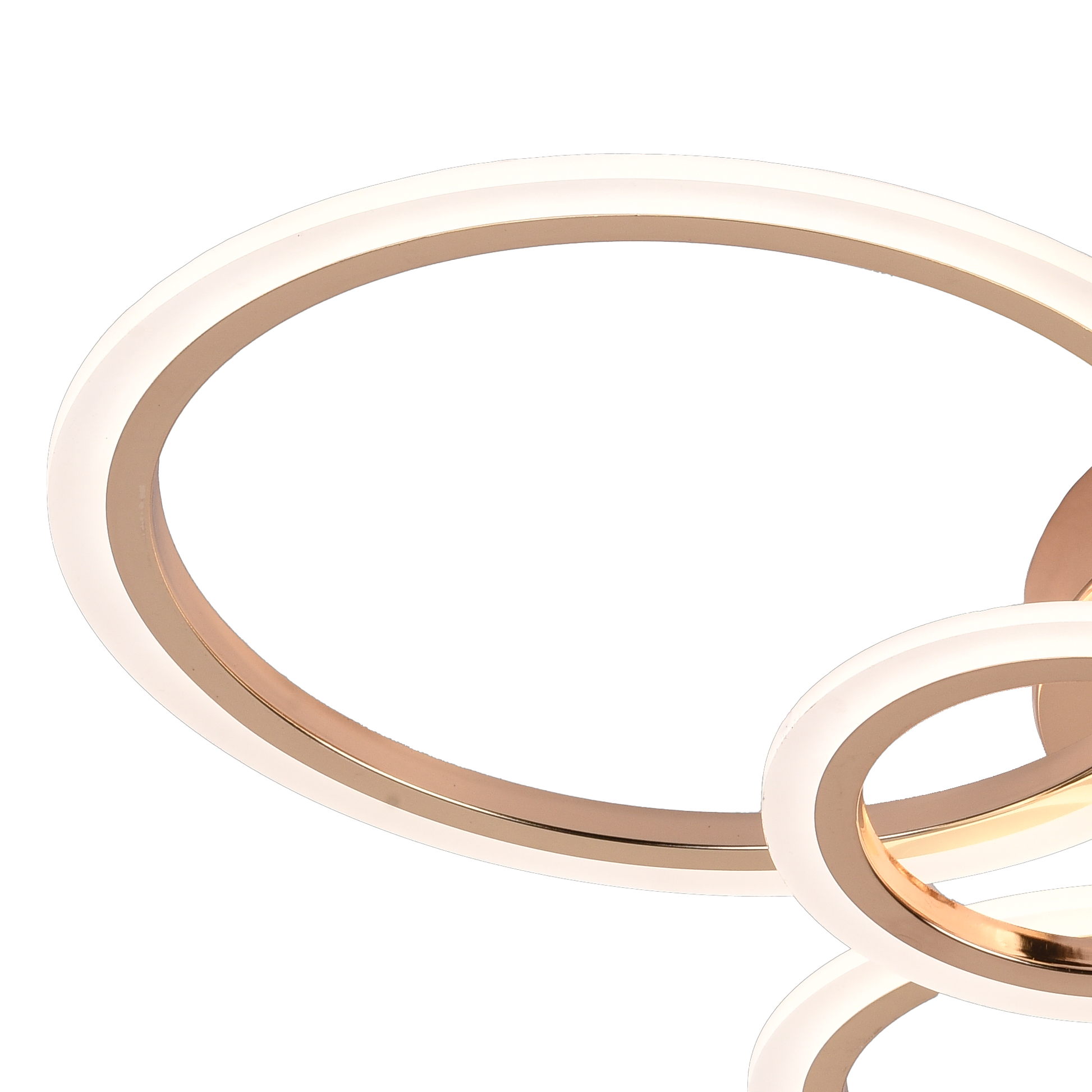 Dálkově ovládaný LED lustr BETTY je moderní a elegantní svítidlo s designem 6 propojených kruhů v lesklém zlatém provedení, které dodává nádech luxusu a tepla. S výkonem 82W nabízí všestranné a efektivní osvětlení různých prostor.