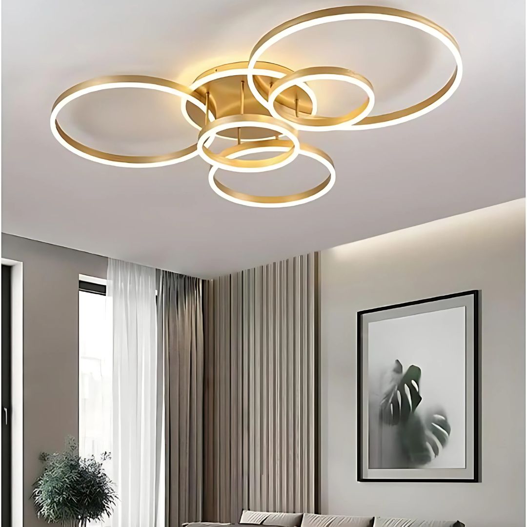 LED lustr s dálkovým ovládáním DARIO, 5 kruhů, 138W, teplé/studené/neutrální světlo, stmívatelný, zlatý