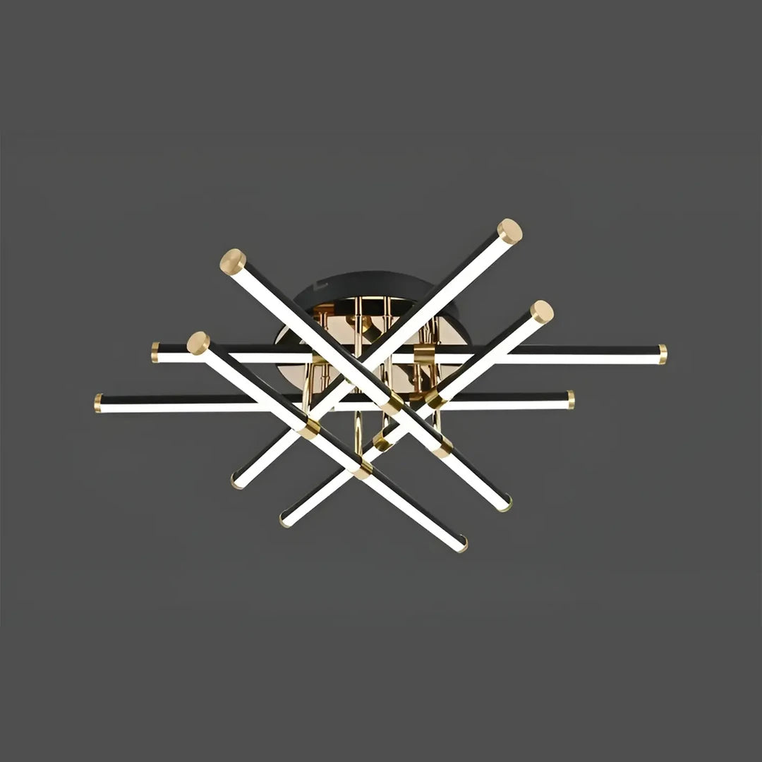 Šest prvků, jejichž tvar není specifikován, je osvětlena LED diodami s možností volby barevné teploty. Prostřednictvím dálkového ovladače si můžete vybrat mezi studeným, teplým nebo neutrálním světlem a intenzitu světla si můžete nastavit díky funkci stmívání. Kombinace černé a lesklé zlaté dodává designu sofistikovaný kontrast a nádech luxusu. S výkonem 144W je ideální pro osvětlení velkých obývacích pokojů, jídelen nebo jiných velkých prostor.