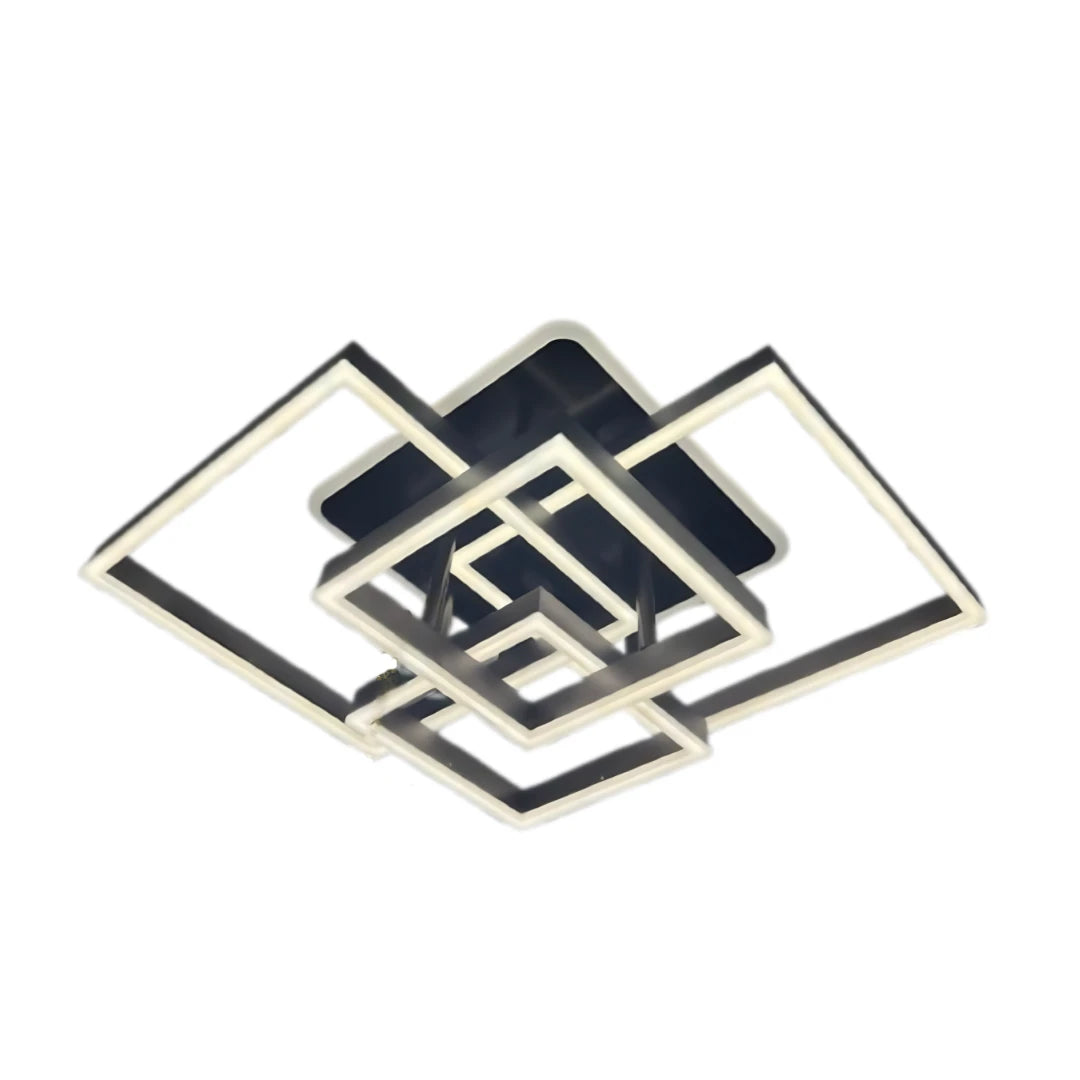 LED lustr s dálkovým ovládáním EMMA 190W, 4 čtverce, studené/teplé/neutrální světlo, stmívatelné, černá