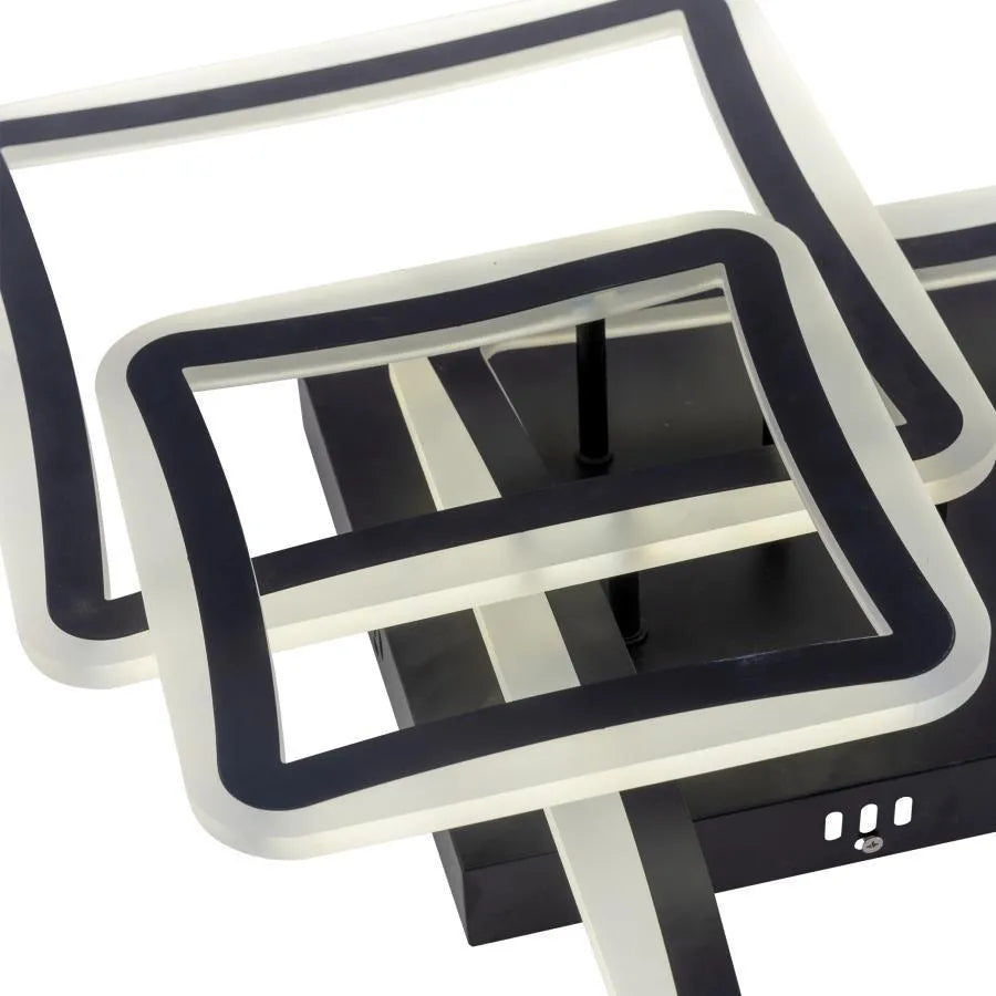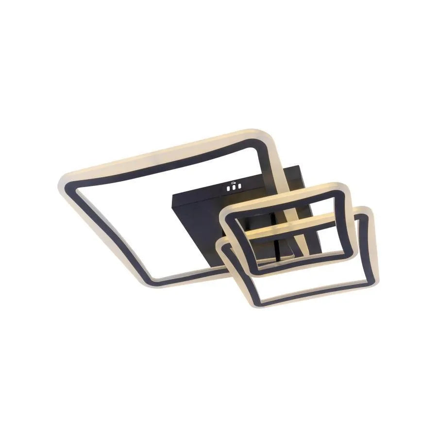 LED lustr FARYDA na dálkové ovládání je moderní a výkonné svítidlo s designem sestávajícím ze 3 stylizovaných čtverců v černém provedení. S výkonem 120W nabízí dostatečné a všestranné osvětlení pro různé prostory.