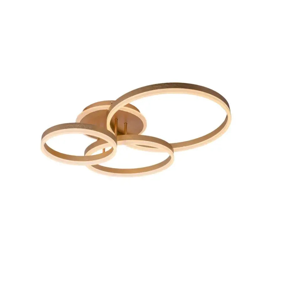 LED lustr s dálkovým ovládáním LYRA 100W, 3 kruhy, studené/teplé/neutrální světlo, stmívatelný, kartáčované zlato