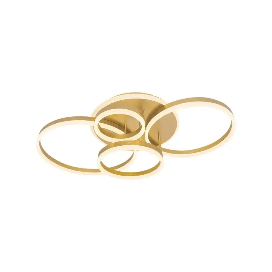 LED lustr s dálkovým ovládáním LYRA 220W, 4 kruhy, studené/teplé/neutrální světlo, stmívatelné, kartáčované zlato