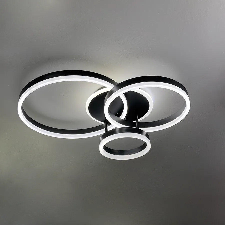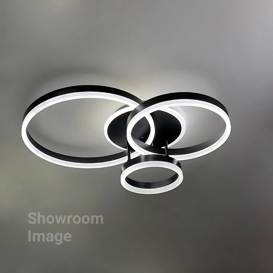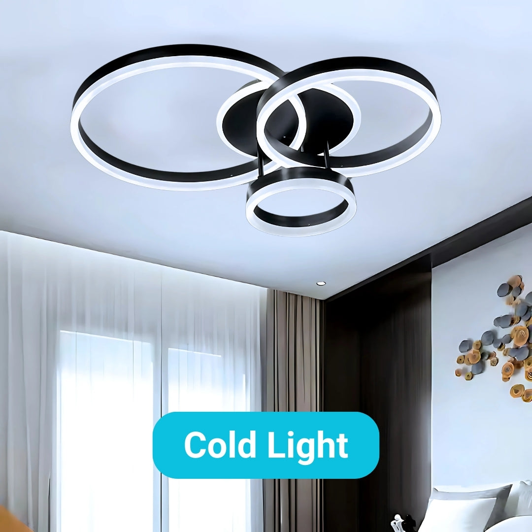 Dálkové ovládání vám poskytuje úplnou kontrolu nad světlem, což vám umožní upravit intenzitu, aniž byste museli vstávat. Design s propojenými kruhy nejen vypadá efektně, ale také zajišťuje optimální rozložení světla v místnosti.