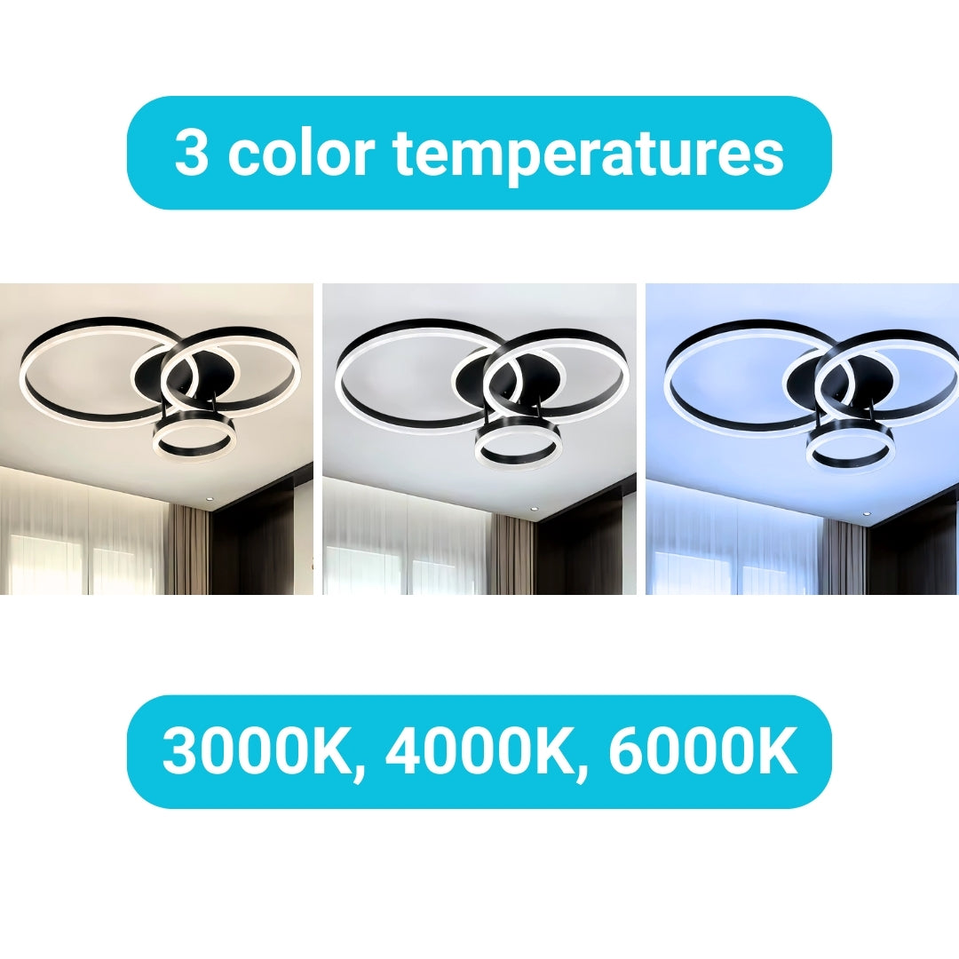 LED lustr s dálkovým ovládáním RIGA LILITH, 69W, 3 kruhy, Studené/Teplé/Neutrální světlo, Stmívatelné, Černá