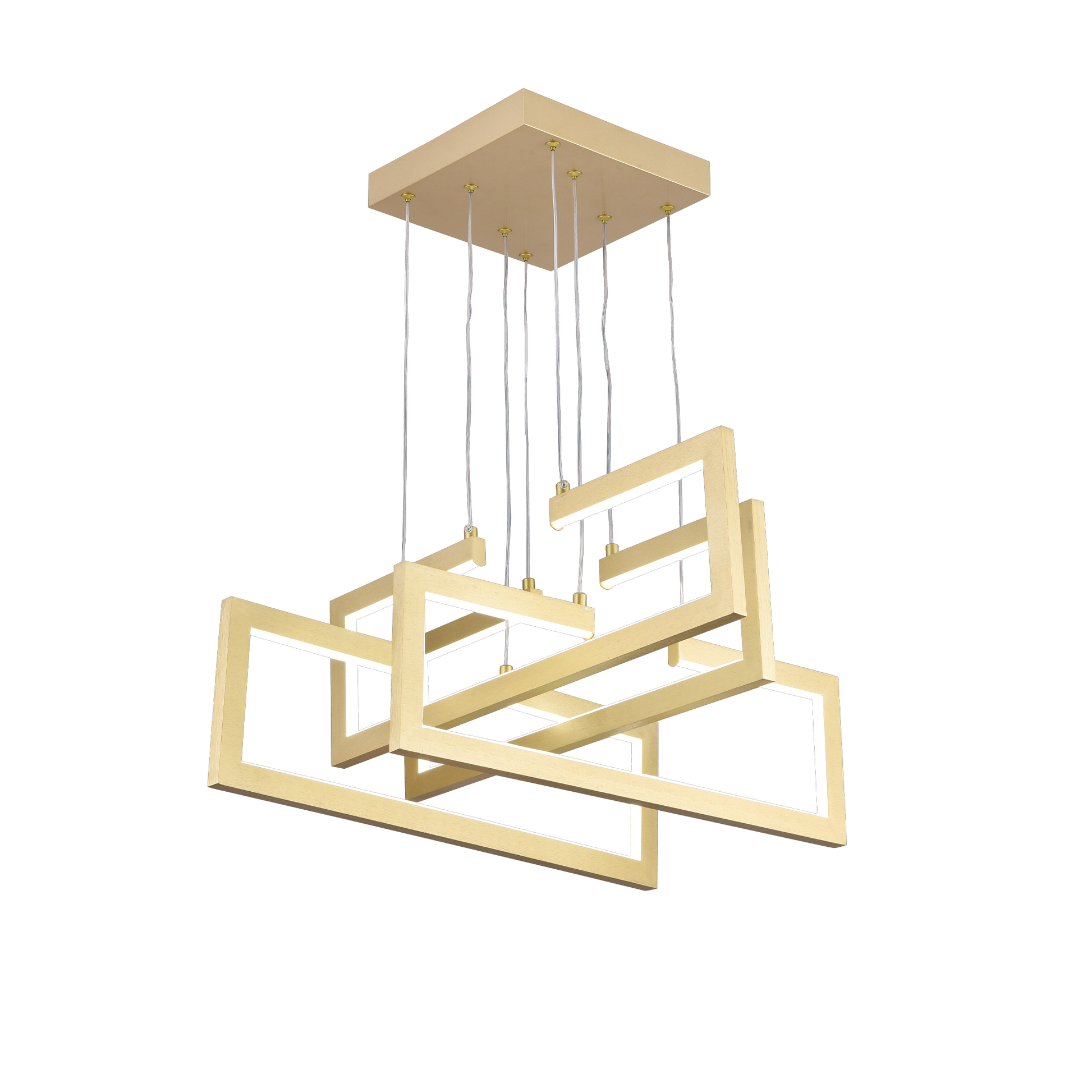 LED lustr s dálkovým ovládáním, Závěsný 98W, 4 prvky, Studené/Teplé/Neutrální světlo, Stmívatelné, Nastavitelná výška, Zlatá