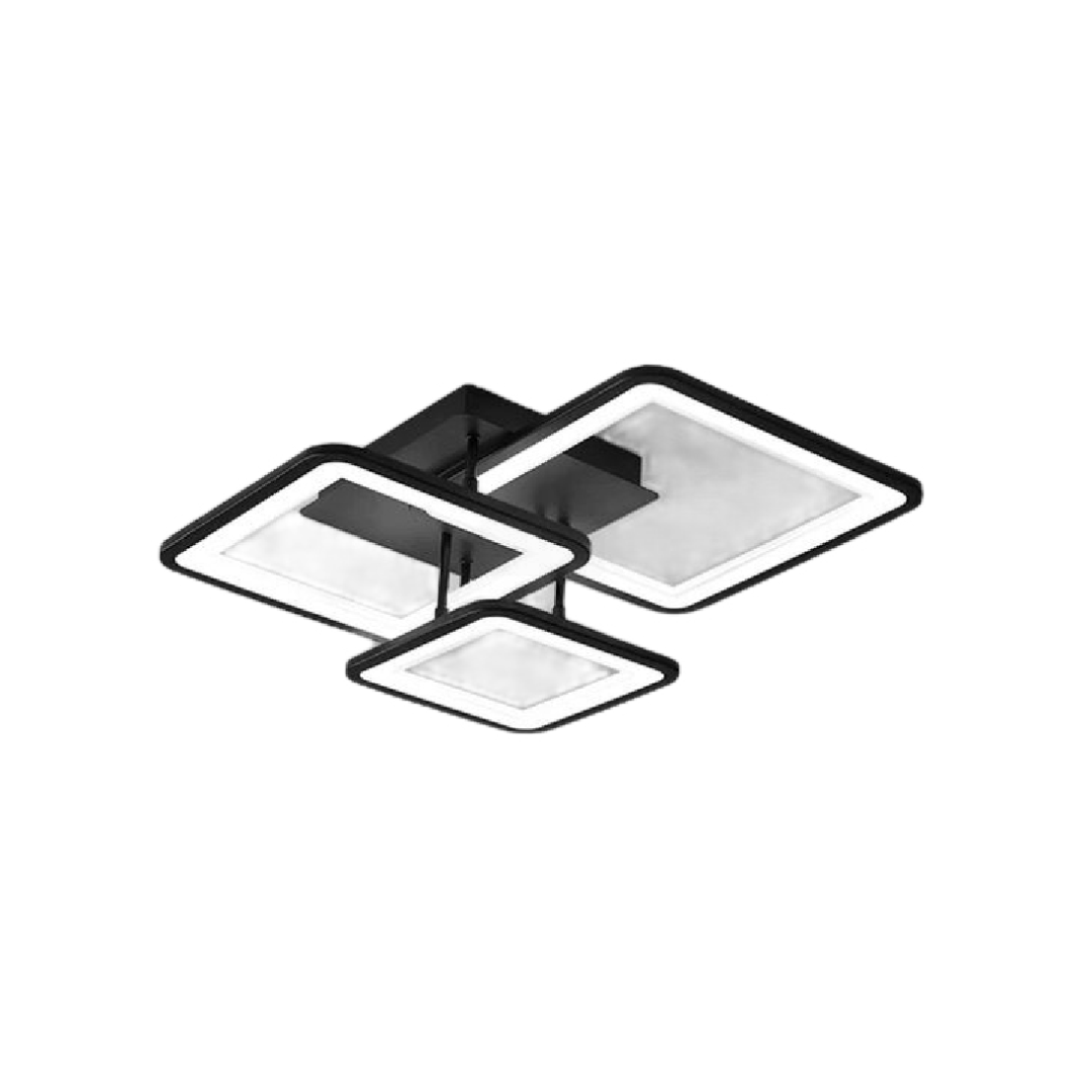 LED lustr s dálkovým ovládáním ZOE 64W, 3 čtverce, studené/teplé/neutrální světlo, stmívatelné, černá