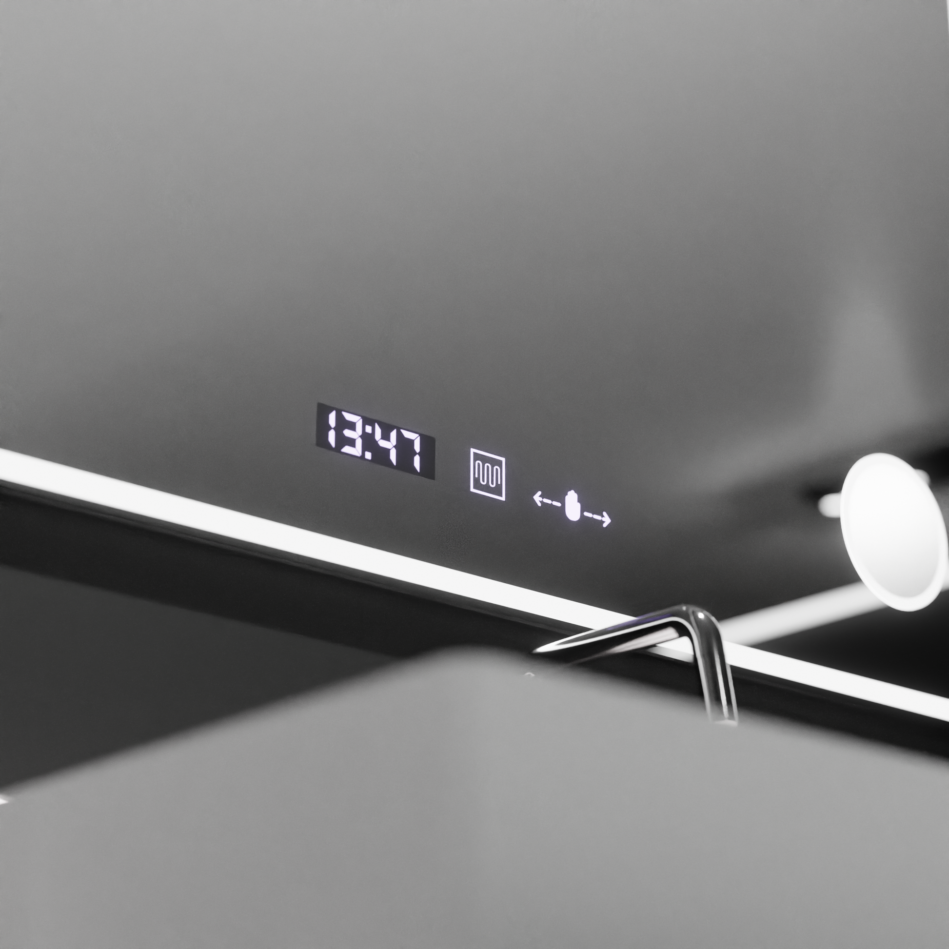 - Integrované užitečné informace: Zrcadlo zobrazuje hodiny a teploměr, což vám poskytuje rychlý přístup k přesnému času a okolní teplotě v koupelně přímo na jeho povrchu.