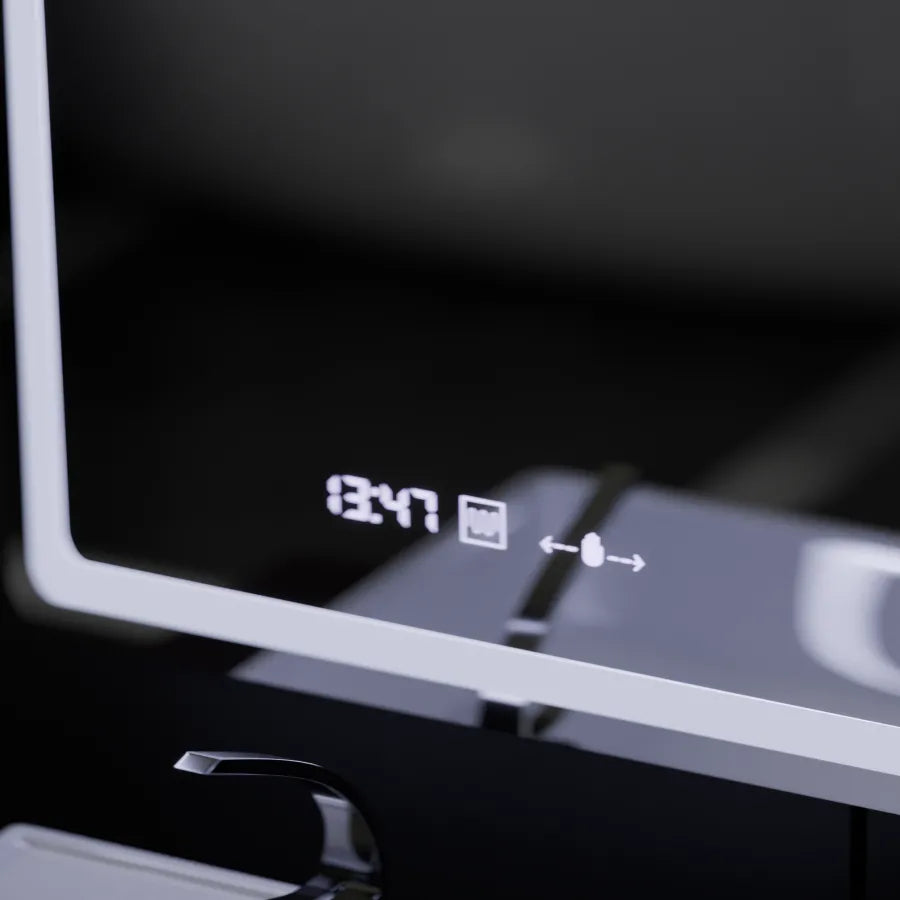 Obdélníkové LED zrcadlo, 60x80 cm, senzor Wizz MotionGlow Marcello, systém odmlžování, hodiny a teploměr, stmívatelné