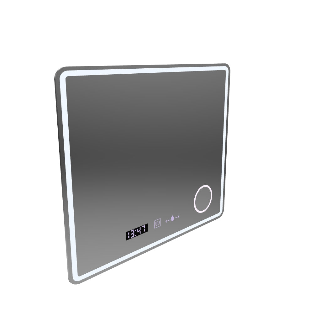 Obdélníkové LED zrcadlo, 90x75cm, Riflesso MotionGlow Marcello, Demister System, Hodiny & Teploměr, Kosmetická lupa, Stmívatelné