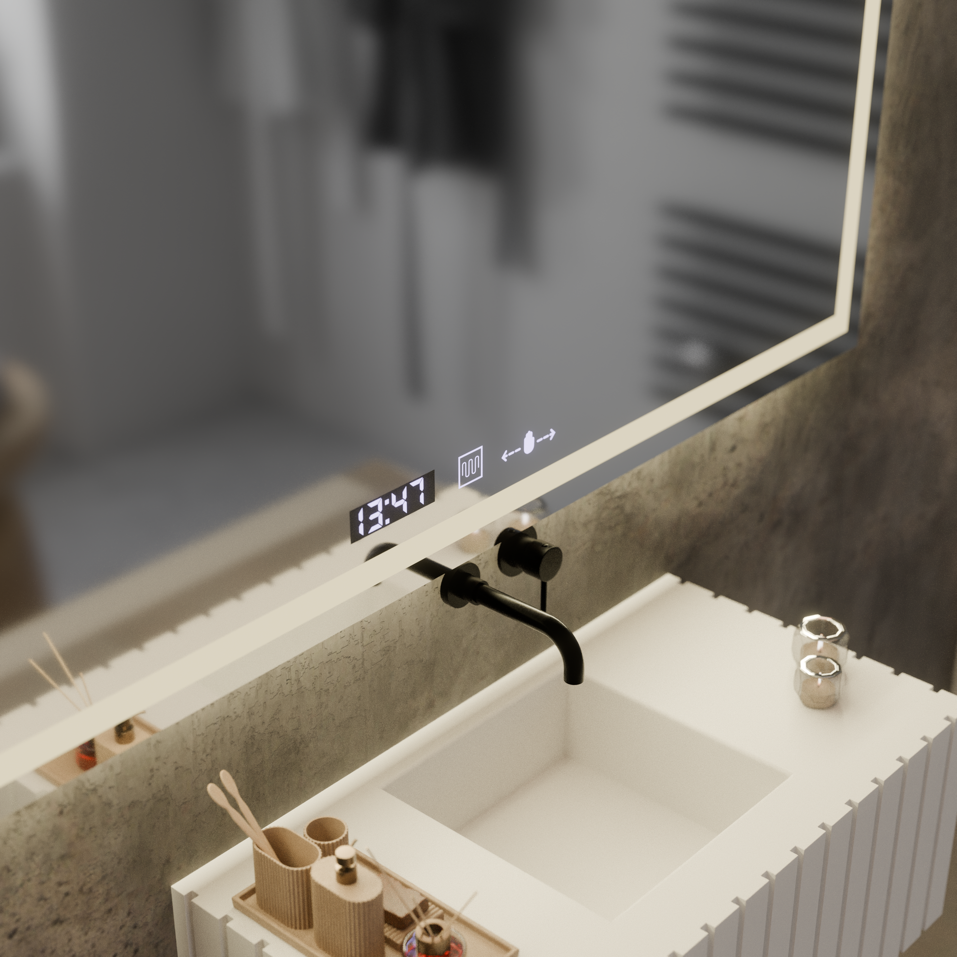 Technologie MotionGlow umožňuje zapnout světlo bez dotyku a stmívatelné LED osvětlení přizpůsobí se vašim potřebám – ať už se chystáte na náročný den nebo zakončíte večer v klidu. Funkce odmlžování po celou dobu udržujte povrch čistý digitální hodiny a okolní teploměr doplňte zážitek užitečnými informacemi přímo v zrcadle.