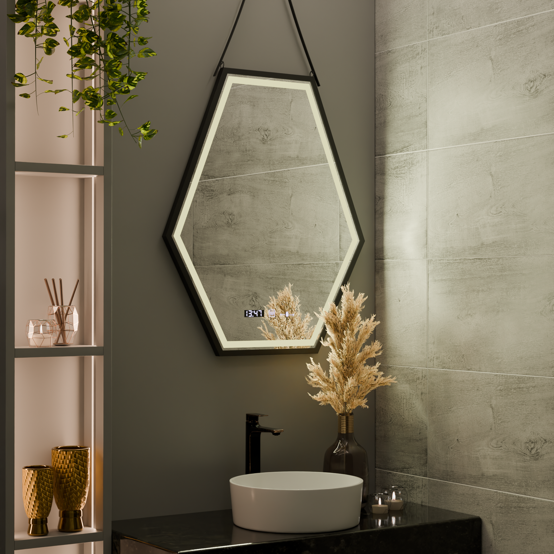 Obdélníkové LED zrcadlo 120x80 cm - Motionglow Marcello Přináší do popředí pokročilé funkce ve velkorysém a elegantním formátu. Dimable LED osvětlení, aktivace senzoru blízkosti a inteligentní funkce funkcí, hodiny, teploměr a integrovaný kosmetický zvětšovací transformaci zrcadla do důvěryhodného spojence pro každodenní rutinu. Ideální pro prostorné koupele nebo soukromé lázně.