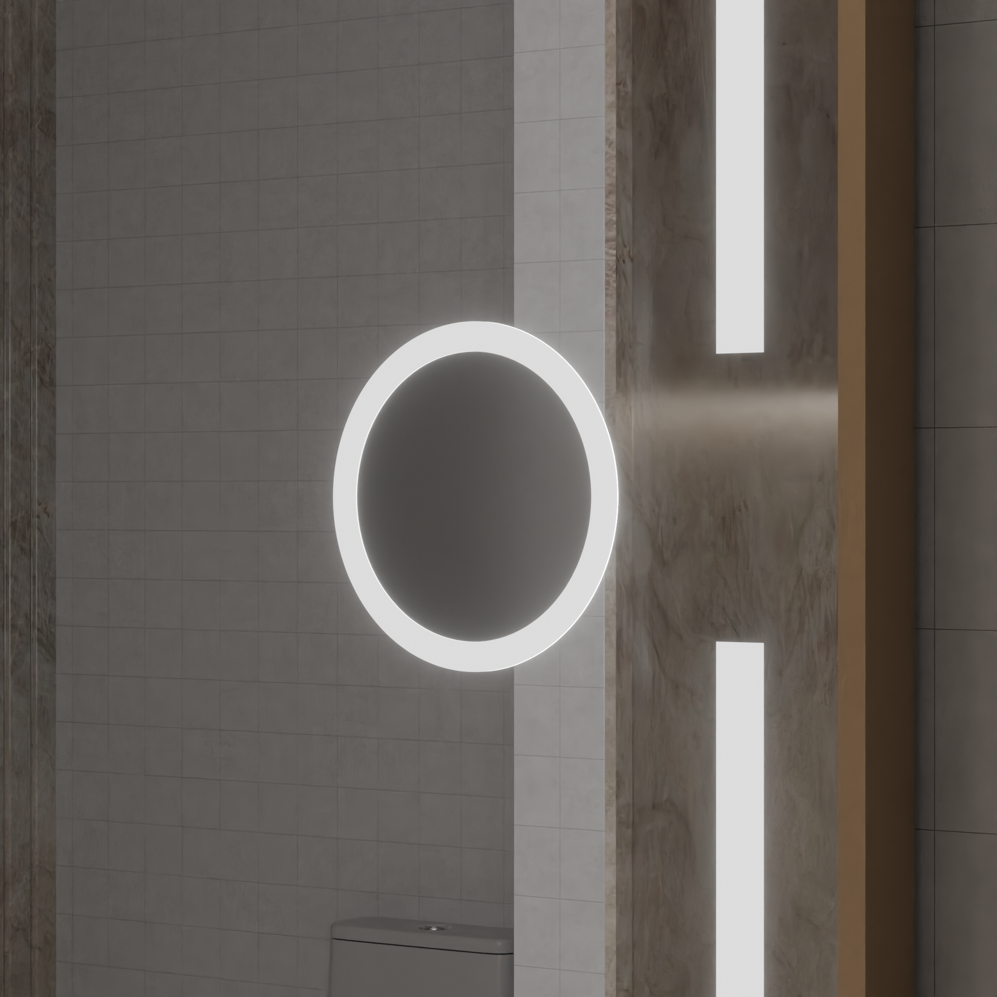 SklademBěžná cena Výprodejová cena 9.386,00 KčLED kulaté zrcadlo, 80 cm, Celeste Royale Gold MotionGlow Marcello, Demister System, Hodiny & Teploměr, Stmívatelné
