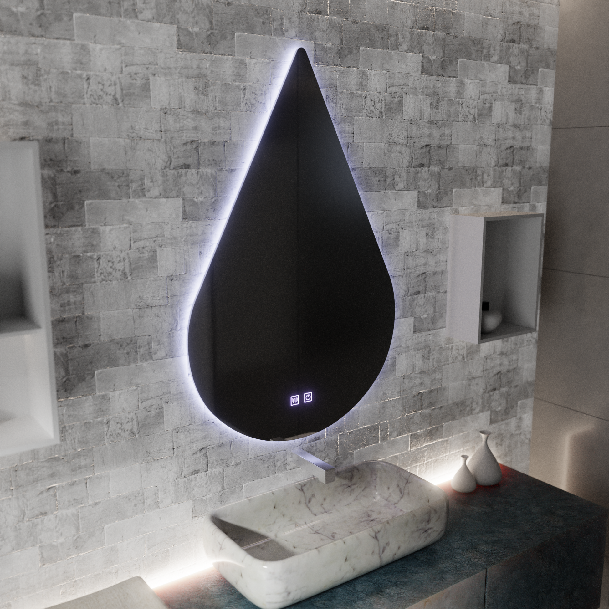 Zrcadlo LED Touch River Demist System 80X120cm, tvar kapky.