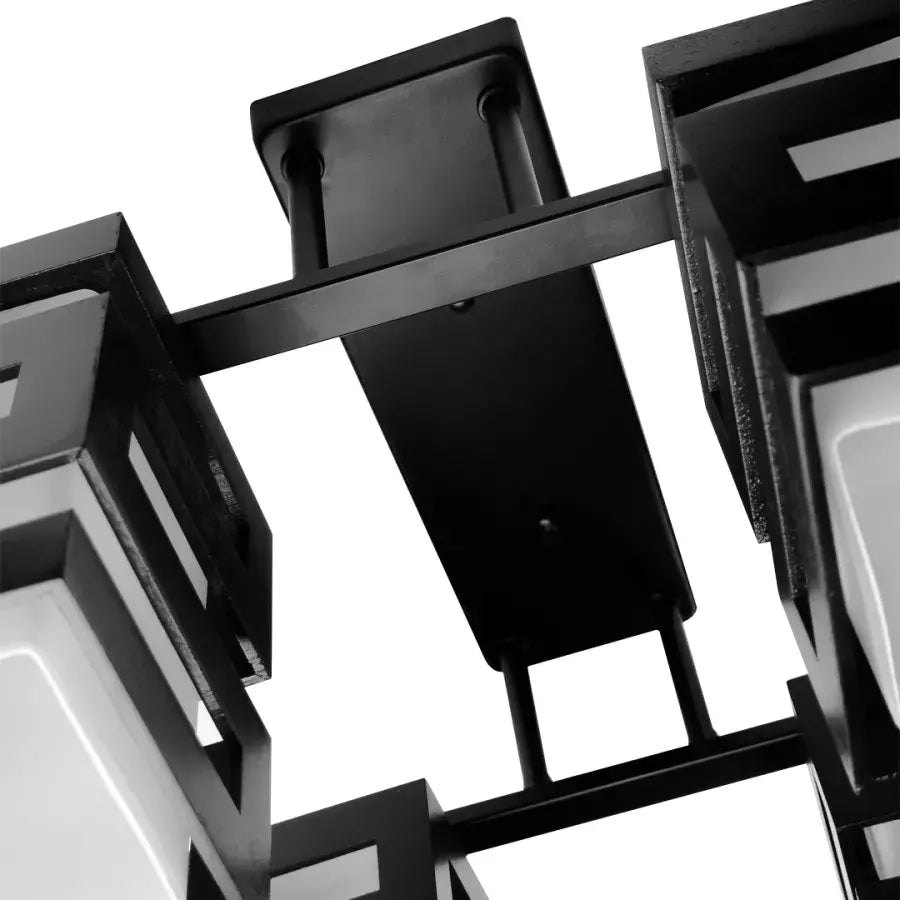 - Modulární design, kontrastní dopad: Jeho stínidla ve tvaru krychle v matné černé barvě se střídají s jasně bílými prvky a vytvářejí vizuální hru hloubky a kontrastu, vyjádření moderního stylu, který přitahuje pohledy.