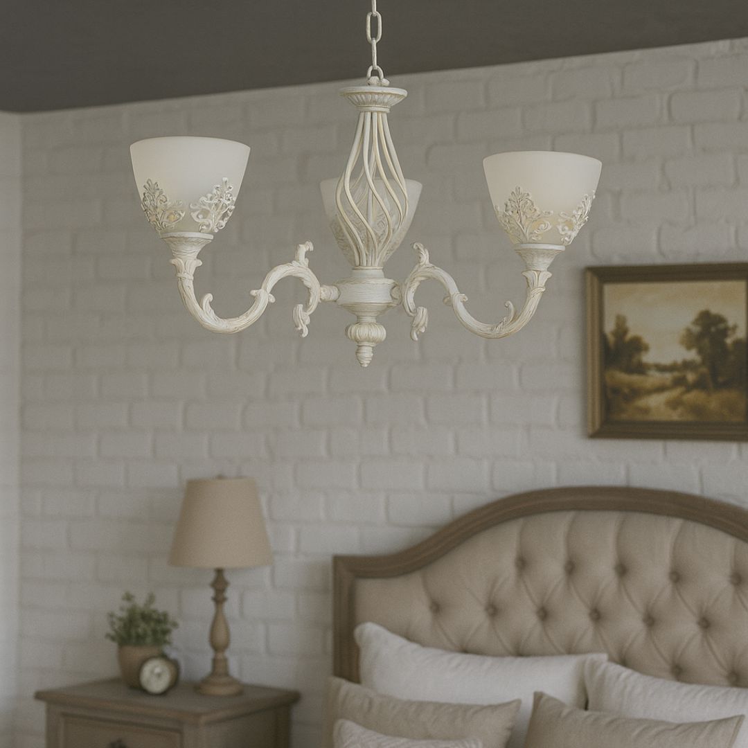 VINTAGE Lustr, Závěsný typ s rameny, COTTAGE, Kruhový, 3xE27, Sklo a kov, Bílá