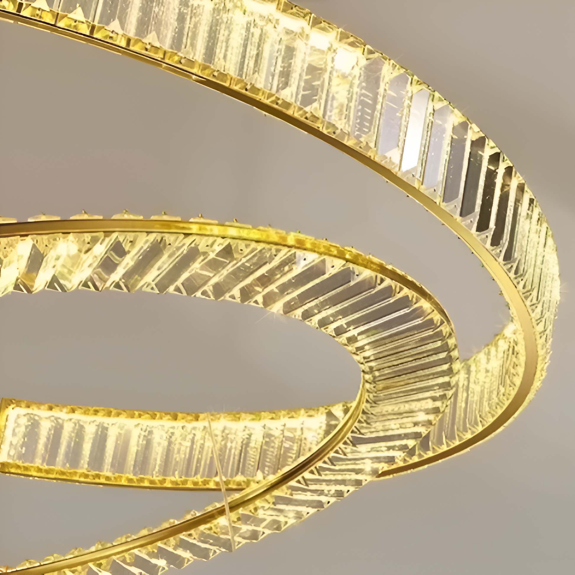 LED Crystal Pendant na dálkové ovládání PRISM REGAL je opulentní a moderní svítidlo navržené tak, aby dodalo jiskru a eleganci každé místnosti. S působivým výkonem 200 W a designem sestávajícím ze dvou soustředných kruhů ve zlatém provedení je tento lustr skutečným ústředním bodem.